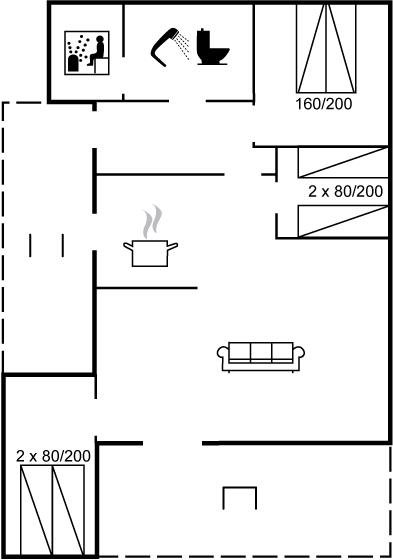 Der er i alt 3 soveværelser. Sovepladserne fordeler sig på: 2 sovepladser i dobbeltseng. 4 sovepladser i enkeltsenge.