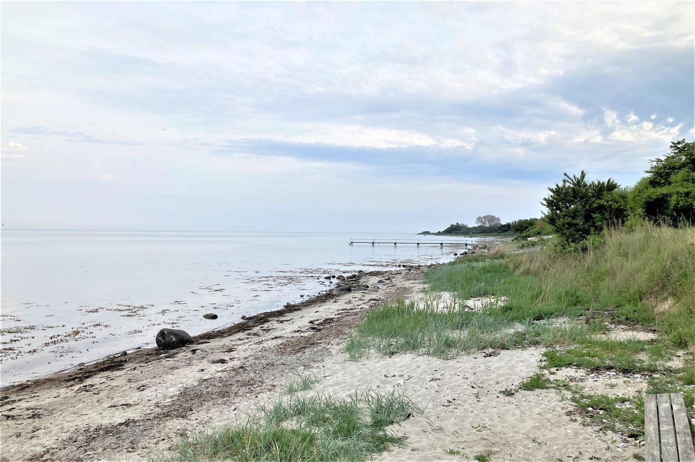 På en havegrund kun 200 m fra en dejlig badestrand, hvor der i sommerperioden er opsat en badebro, ligger dette sommerhus i sten. Til huset hører såvel åben som overdækket terrasse med havemøbler.