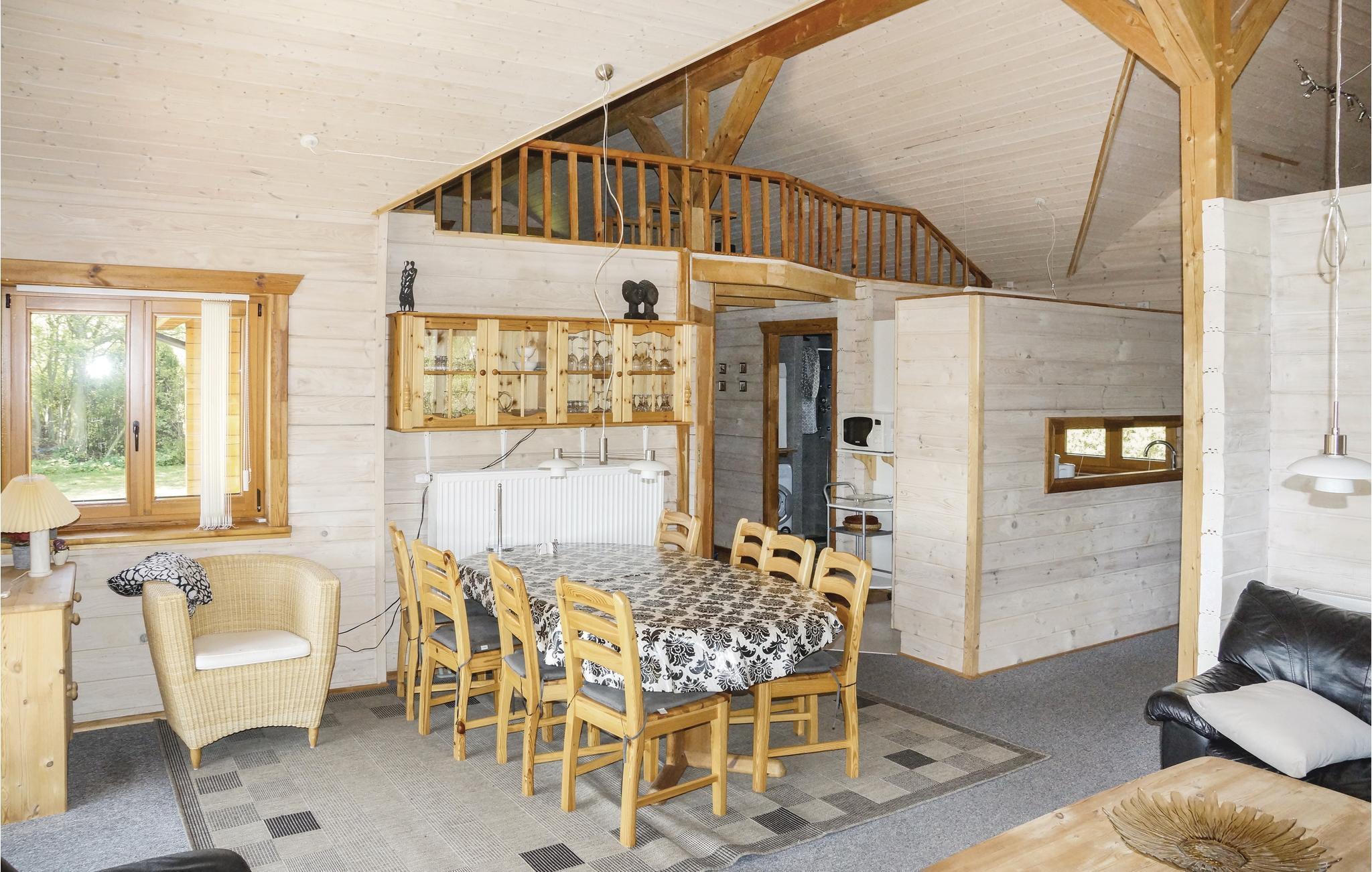 Rummeligt og hyggeligt sommerhus opført med synlige bjælker, som giver et rustikt og charmerende look. Huset er dejligt indrettet med et godt køkken/alrum med kig op til hemsen. 4 gode soveværelser og 2 badeværelser - i det ene kan I nyde en tur både i spabadet og saunaen. Terrassen og den lukkede have giver mulighed for et ugenert udeliv. Fra huset er der kun et stenkast til den hyggelige badestrand, der er meget børnevenlig.