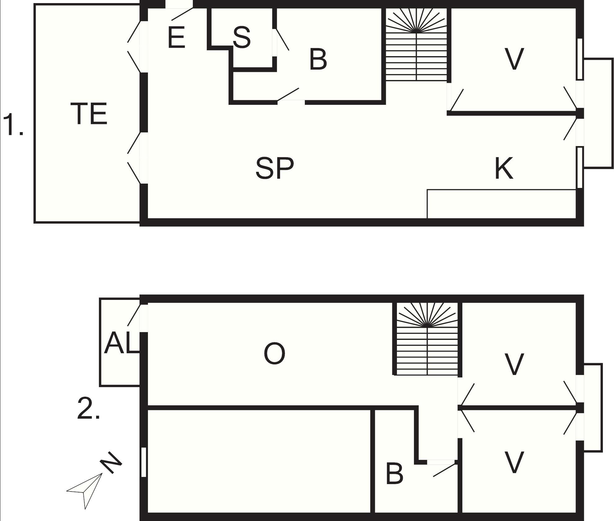 På 2. sal er der 2 soverum med mørklægningsgardiner samt et tilhørende badeværelse med bruser og vaske/tørremaskine. Fra alle værelser er der en flot udsigt over området. Udlejes ikke til ungdomsgrupper.