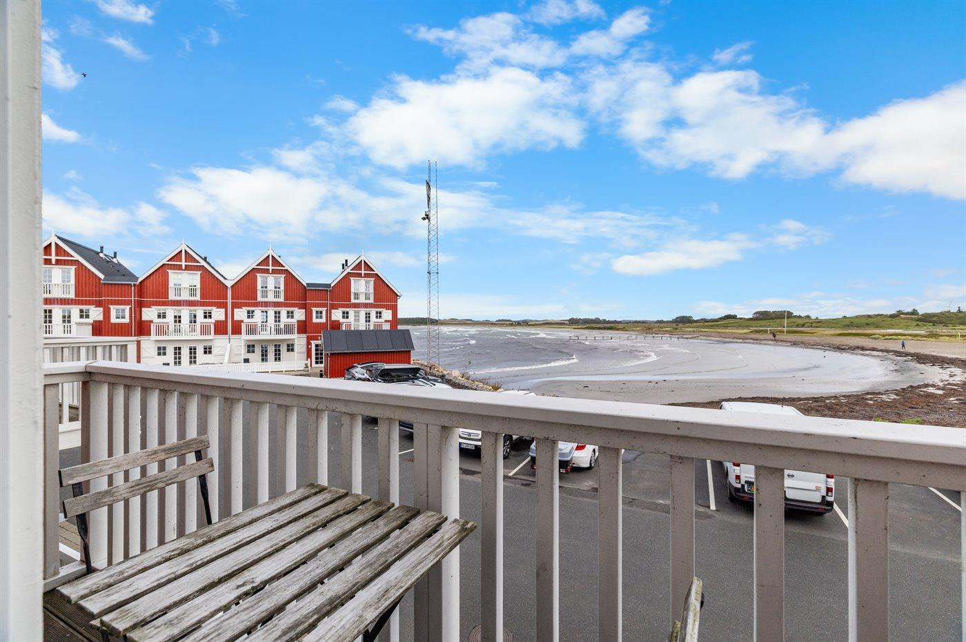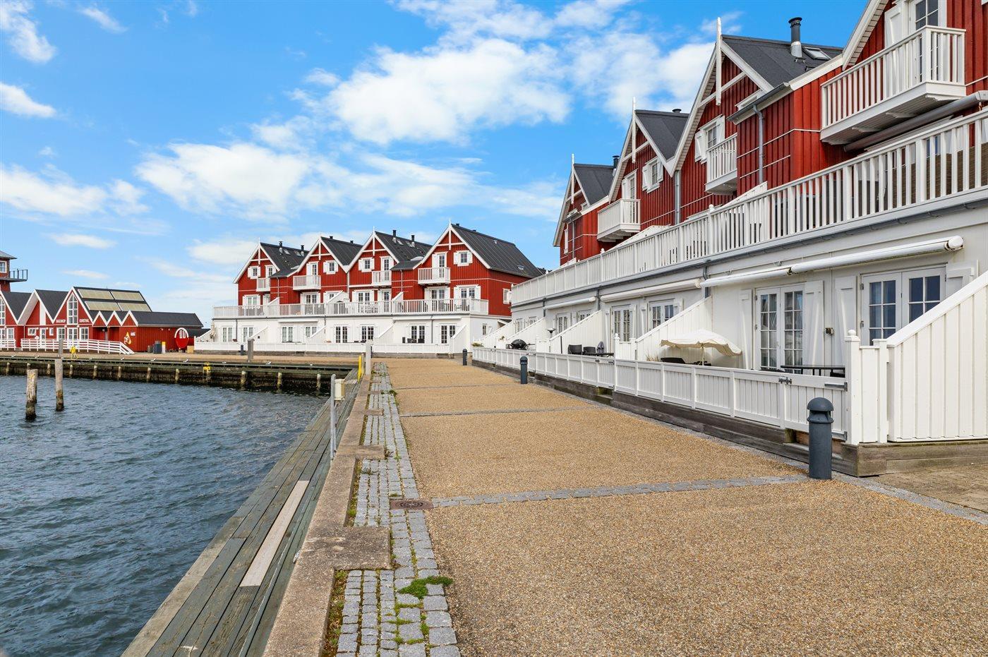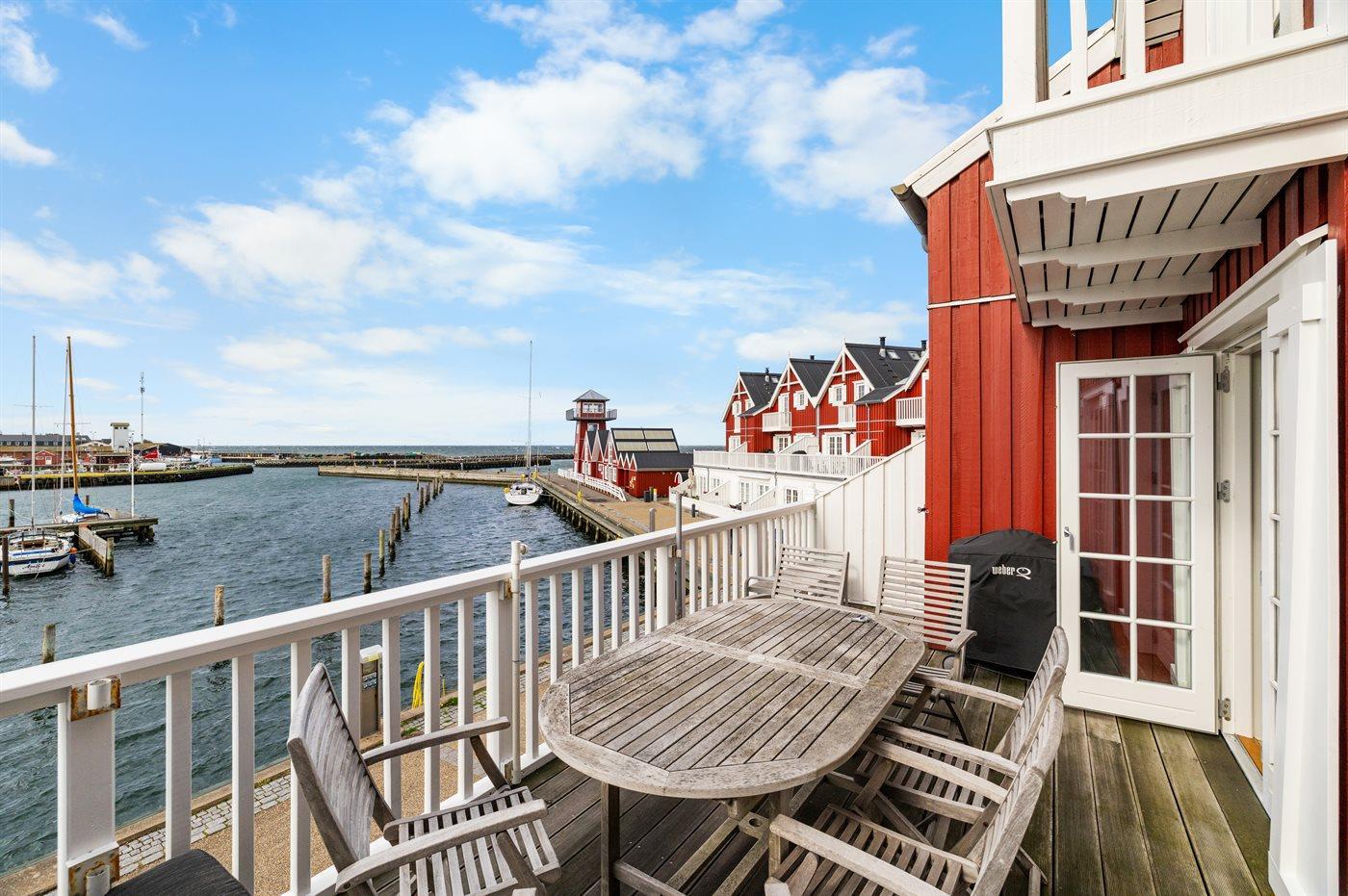 Lejligheden ligger på hhv. 1. og 2. sal og har terrasser på begge sider. Fra den ene side er der udsigt ud over hele marinaen og fra den anden er der udsigt ud over stranden, hvor der er i sommerhalvåret, er opsat badebro.