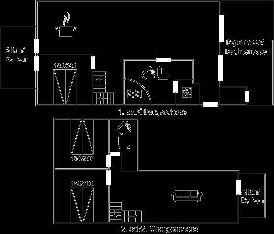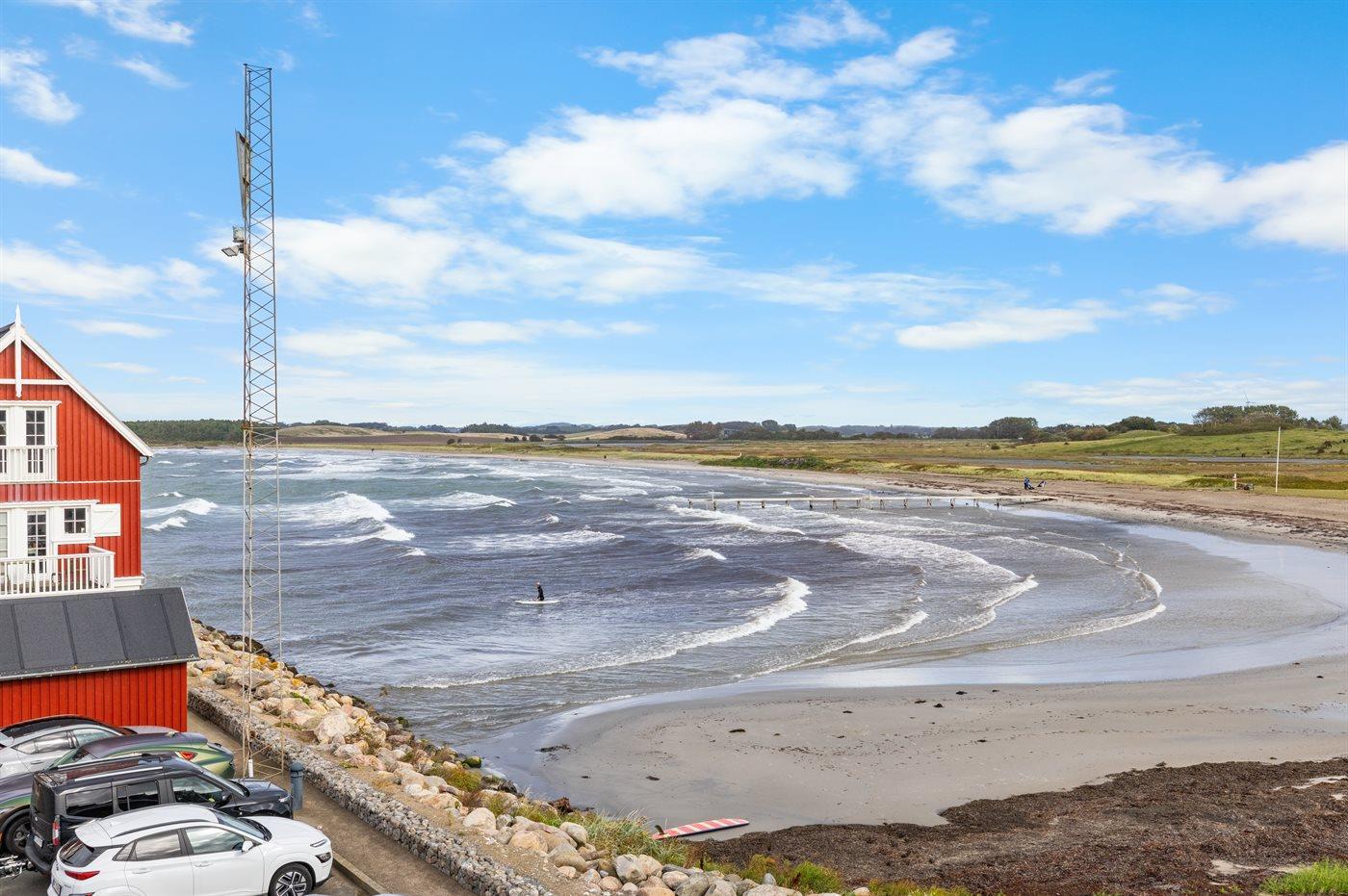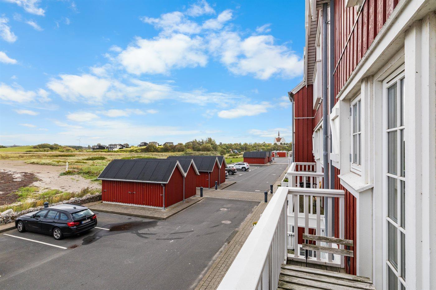 Lejligheden ligger på hhv. 1. og 2. sal og har terrasser på begge sider. Fra den ene side er der udsigt ud over hele marinaen og fra den anden er der udsigt ud over stranden, hvor der er i sommerhalvåret, er opsat badebro.
