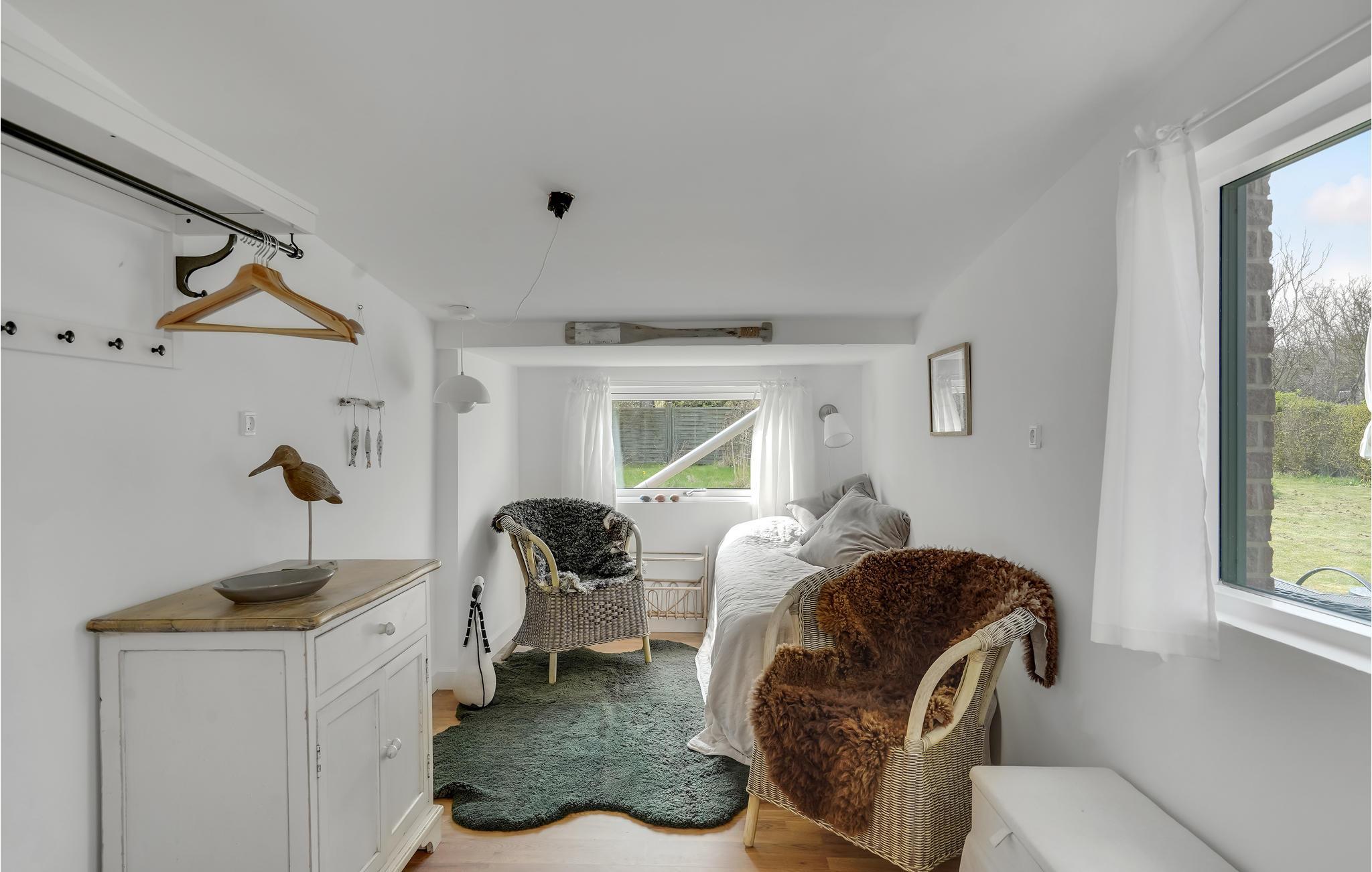 Tag familie eller venner med på ferie, og nyd hinandens selskab og de dejlige omgivelser. De store vinduer i stuen sørger for et fantastisk lysindfald. Trappen til 1. sal er en anelse stejl, men I bliver belønnet med en fantastisk udsigt til havet. Tag morgenkaffen med op, og nyd den på altanen. Glæd jer til mange hyggelige timer i udestuen, som er en fantastisk forlængelse af huset. Her kan I sidde i alt slags vejr og nyde en skøn udsigt over haven.