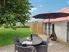 Når vejret er godt, kan I sætte jer ud i haven og nyde solen på terrassen med havemøbler. Terrassen er ligger dejligt tilbagetrukket fra vejen, så I får masser af ro og privat udendørsrum. Der er også mulighed for at tilberede lækre retter på grillen eller tage et hvil på liggestolene. Den grønne græsplæne inderbyder til masser af boldspil for både små og store.