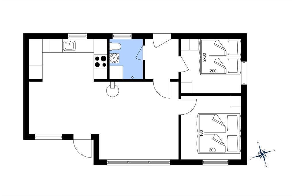 Her kan I komme ned i gear og nyde naturen. Huset er indrettet med en åben køkken/stue planløsning. Her kan I være sammen om at lave dagens måltider imens I planlægger næste dags udflugter. Ungerne kan streame TV og på de kolde dage kan I tænde op i brændeovnen. Her er 2 soveværelser, 1 med en dobbeltseng og 1 med dobbelt sovesofa. Så her er god mulighed for at trække sig tilbage og læse en god bog eller tage en lur. Badeværelse, med toilet, håndvask og bruser. Huset opvarmes med varmepumpe og brændeovn. Fra stuen kan I gå ud på en dejlig træterrasse, højt beliggende.
