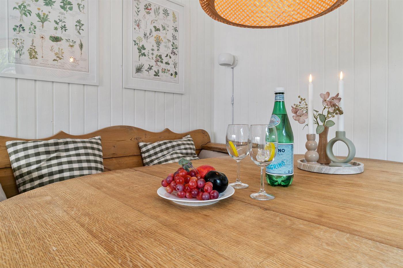 Køkkenet er udstyret med 1 køleskab. Der er 4 keramiske kogeplader, varmluftovn, mikrobølgeovn samt opvaskemaskine.