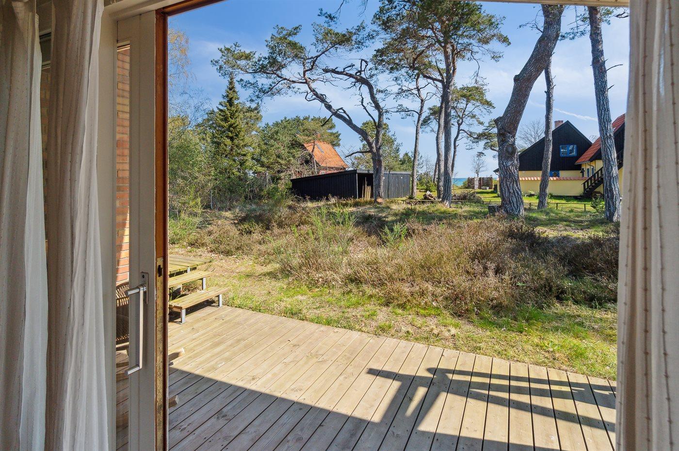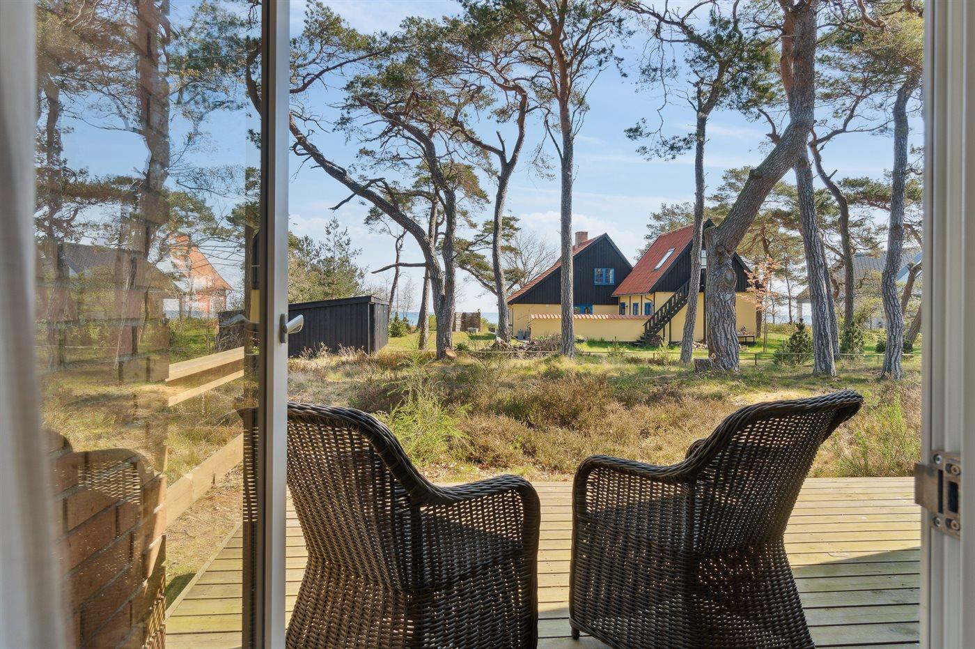 Hyggeligt feriehus i Balka med unik arkitektur, tæt på børnevenlig strand og havudsigt fra terrassen.