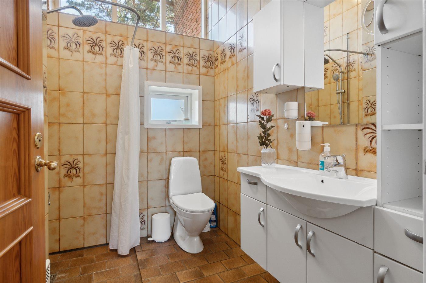 Der er 1 badeværelse med bruser og 1 toilet.