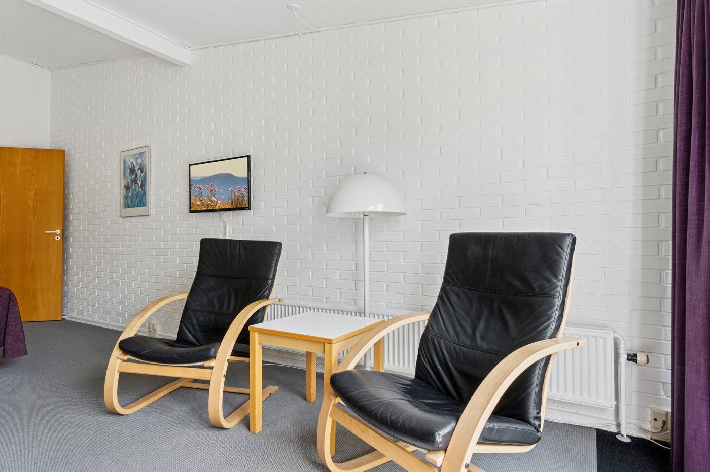Sovepladserne fordeler sig på:2 sovepladser i dobbeltseng. 1 soveplads i sovesofa (enkelt).