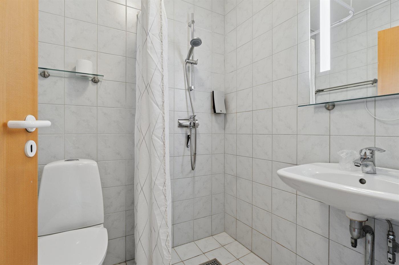 Der er 1 badeværelse med bruseniche og 1 toilet.