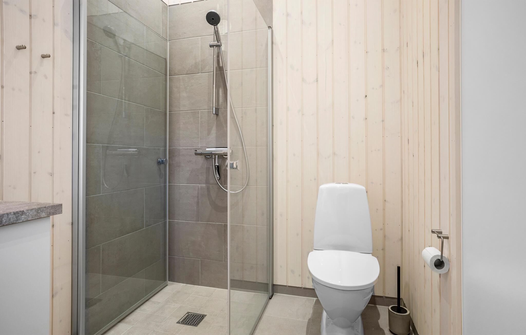 Det store udendørsområde med træterrasse lægger op til afslapning og aktiviteter i det fri. Begynd dagene med et forfriskende brusebad udendørs, spis morgenmad i den klare havluft og afslut dagen med en hyggelig grillmiddag.