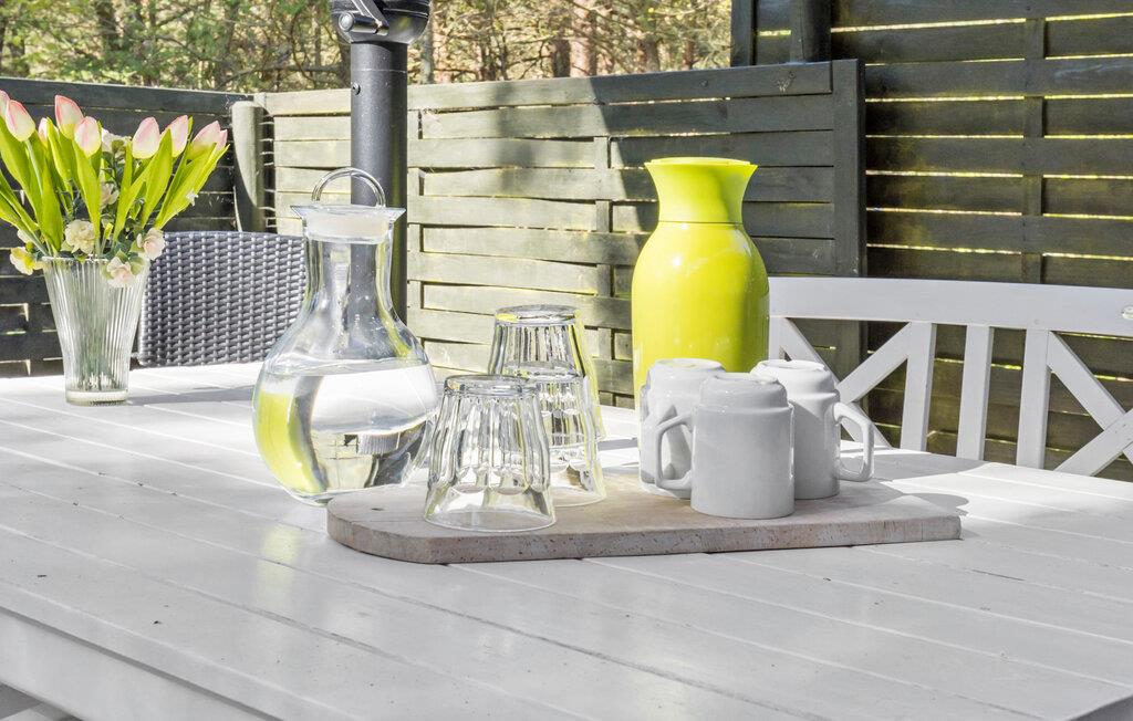 Når vejret er lunt, kan I rykke selskabet ud på den store terrasse med havemøbler og grill, hvor I både finder sol og skygge. Rundt om huset er der en dejlig grund, hvor I kan lytte til fuglefløjt og nyde freden og roen.
