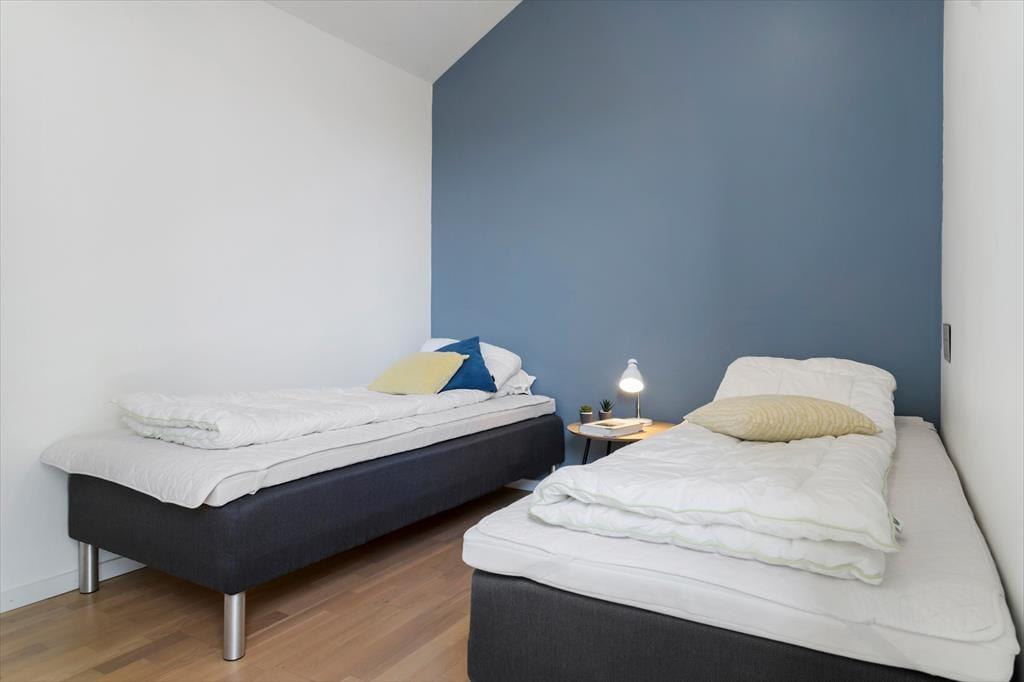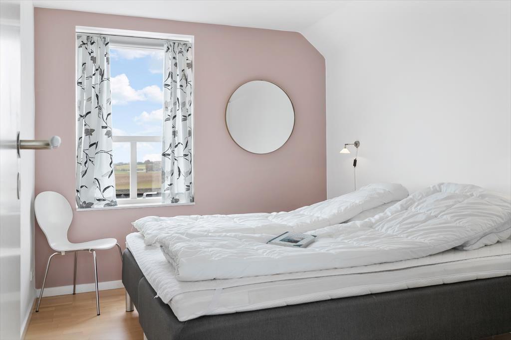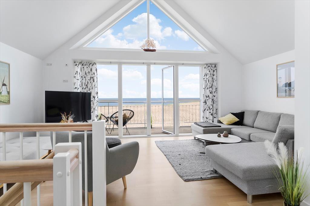 På 1. sal er endnu et dejligt opholdsrum, hvor hyggen og den fantastiske udsigt er i centrum. Det store gulv til loft vindue mod øst lader lyset og den flotte havudsigt strømme helt ind i rummet. I dette dejlige samlingsrum kan du slænge dig i sofaen og nyde udsigten. Den hyggelige indretning sikrer, at I alle kan slappe af sammen og snakke om dagens oplevelser eller tænde for TV´et. Fra stuen er også en terrassedør ud til altanen, hvor du kan glæde dig til at nyde den helt særlige beliggenhed og udsigt fra første parket. På 1. salen er endnu to gode soveværelser med dobbeltsenge og et dejligt lysindfald. Værelserne er hyggeligt og stilfuldt indrettet. Mellem stuen og værelserne er yderligere et toilet, hvilket giver en ekstra komfort, når I er op til 8 gæster i huset.