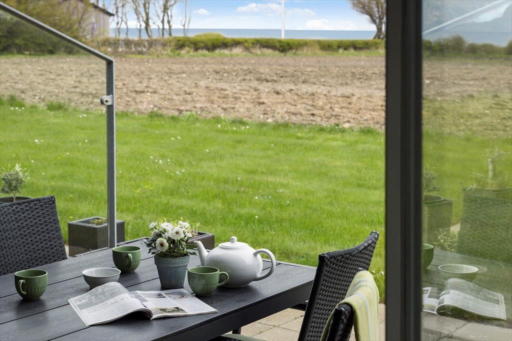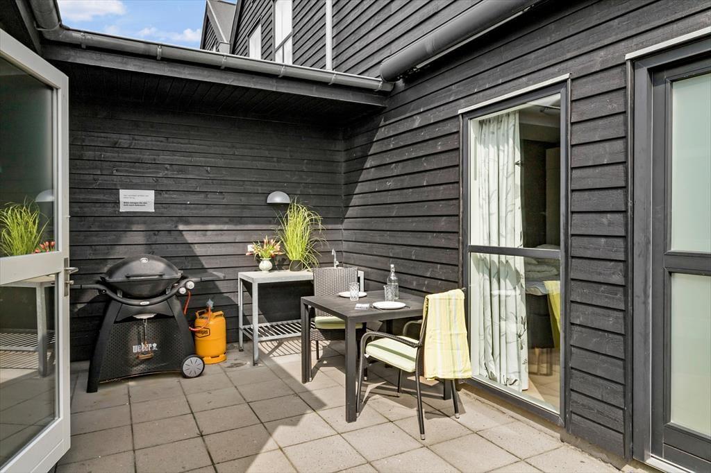 På husets modsatte side er der endnu en terrasse, der ligger i læ af huset. Her er også udendørs plads til, at I bl.a. kan ordne fisk, hvis I har haft heldet med jer på fisketuren.
