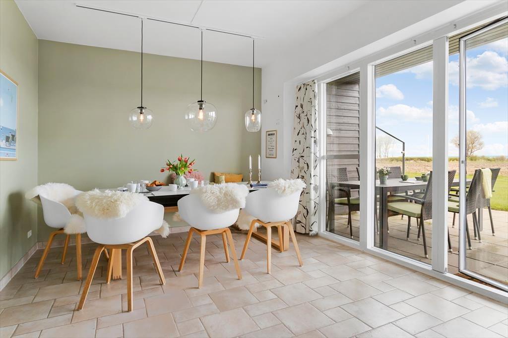 I det dejlige køkkenalrum bliver du med det samme draget mod de store vinduer og udsigten over Samsøs østlige kyst. Her kan I lave mad og være sammen, mens I nyder det dejlige lysindfald og holde øje med livet i Kattegat. Køkkenet er lyst og hyggeligt indrettet samtidig med, at det har alle de nødvendige faciliteter, I skal bruge, når feriens måltider skal tilberedes. I kan nyde måltidet ved spisebordet eller tage morgenmaden med udenfor på den delvist overdækkede terrasse. Du finder næppe et bedre sted at nyde en solopgang og din morgenkaffe.