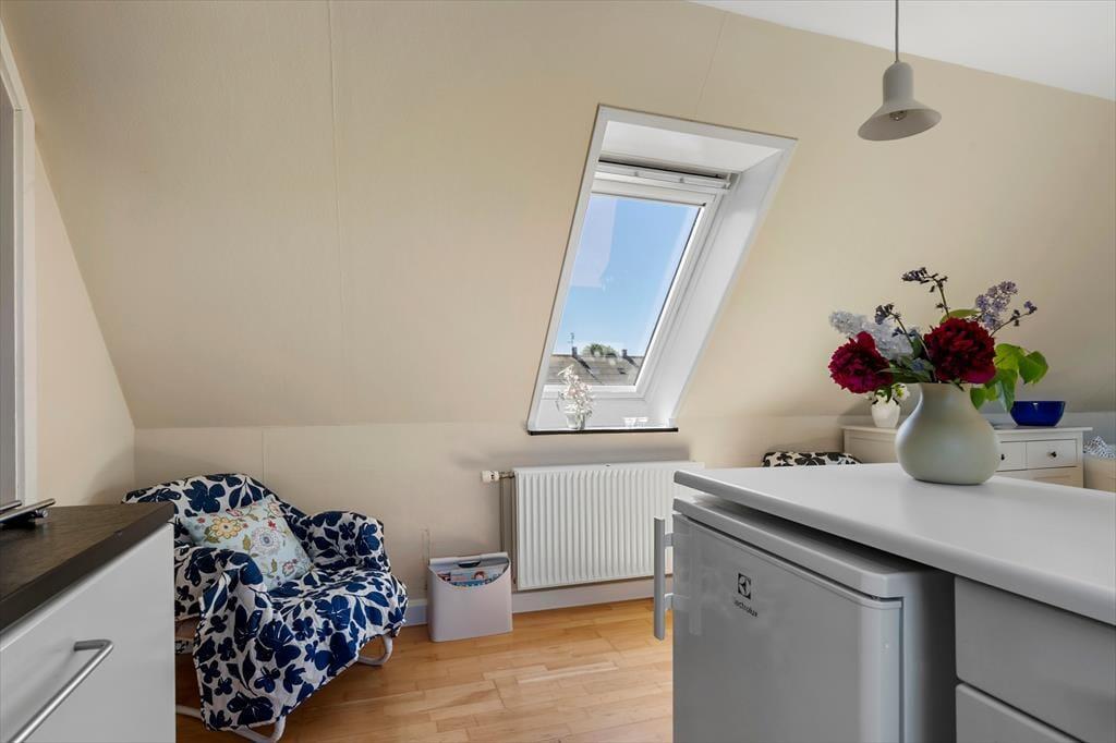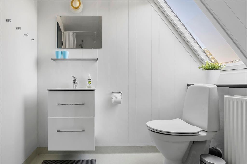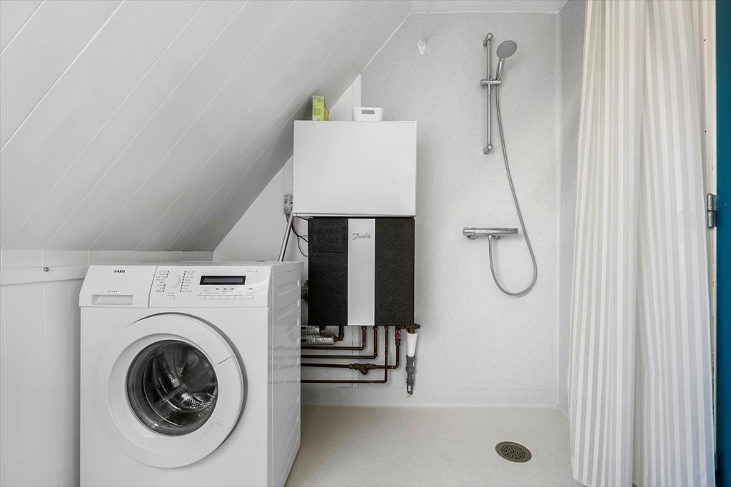 Køkkenet er kompakt og fuldt udstyret, så I nemt kan tilberede morgenmad eller feriemiddag. Badeværelset er moderne og praktisk med bruseniche og god opbevaringsplads. Der er fjernvarme til opvarmning.