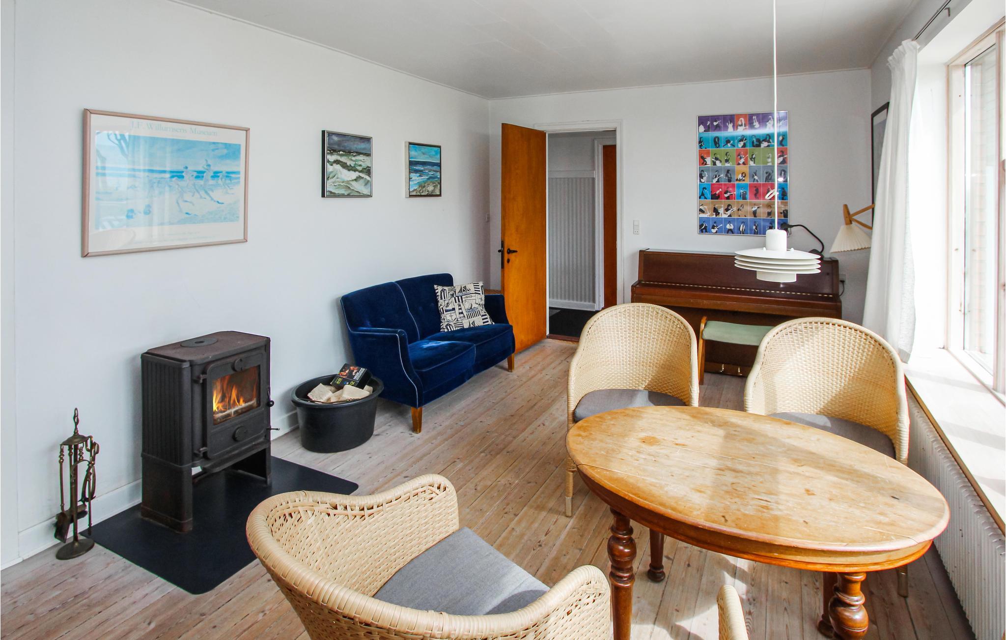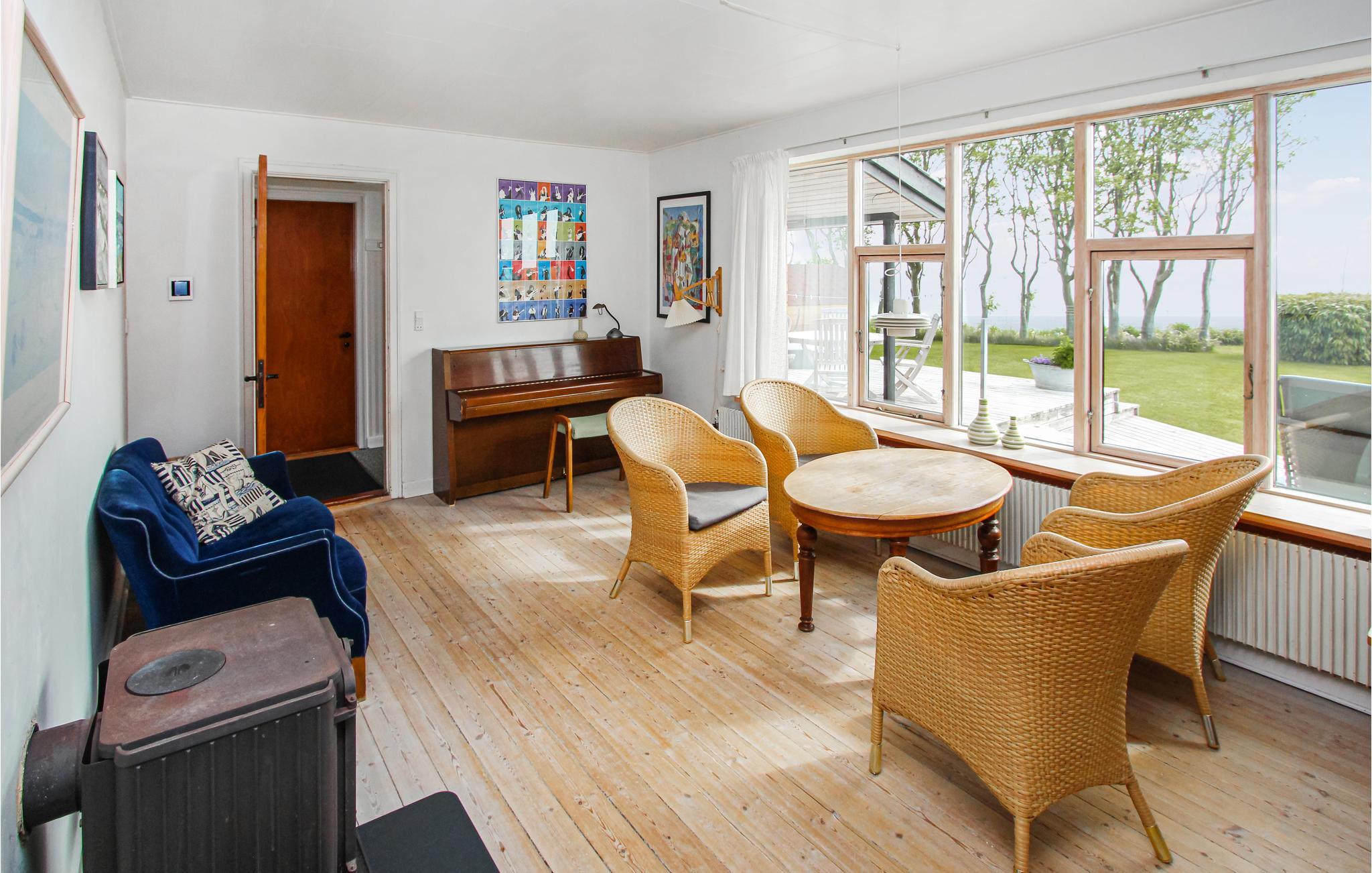 Huset byder sine gæster velkommen på en grund ved siden af stranden og charmerer ikke kun med en storslået havudsigt og udsigt over Ballen havn, det er også lyst og hyggeligt indrettet, hvilket gør det til det ideelle sted for en uforglemmelig ferie ved havet. I stuen kan I give berige medrejsende med en serenade ved klaveret eller arrangere en rigtig sangaften, og hvis I derefter tænder op i brændeovnen, er stemningen perfekt.