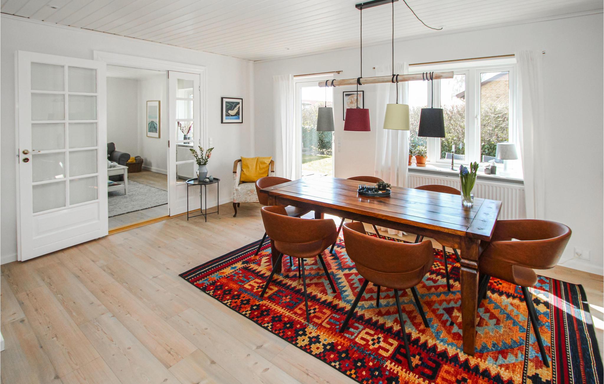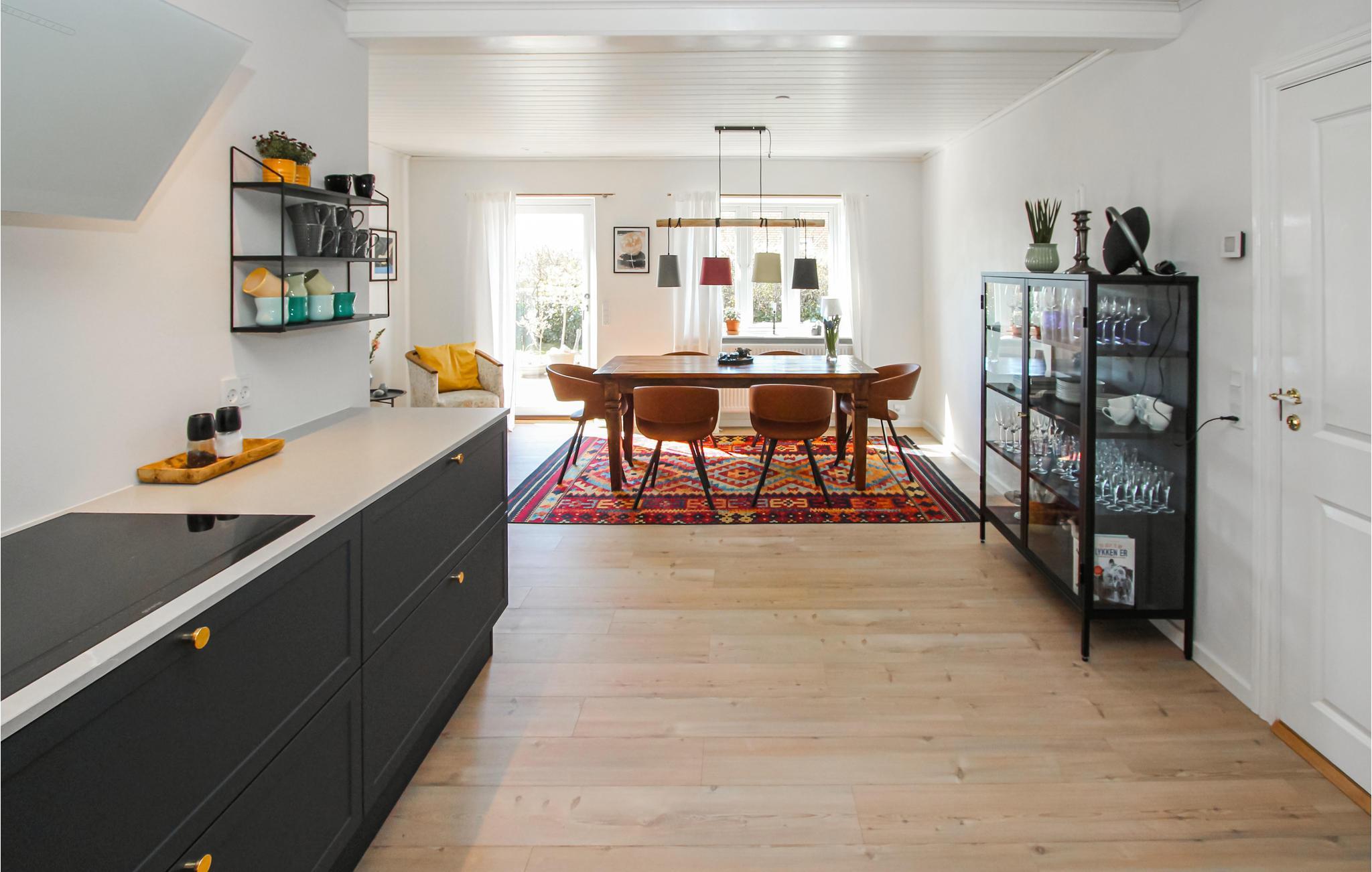 I dette tiltalende hus er der optimale muligheder for at I kan have det sjovt sammen. Tilbered lækre måltider sammen i det moderne køkken, spis i stor stil ved det skønne spisebord og sæt jer senere til rette i de bløde sofaer. Se en film, spil et brætspil eller tal om oplevelserne fra dagen, der er gået. Når I trænger til at gå til ro, ligger værelserne placeret på første sal.