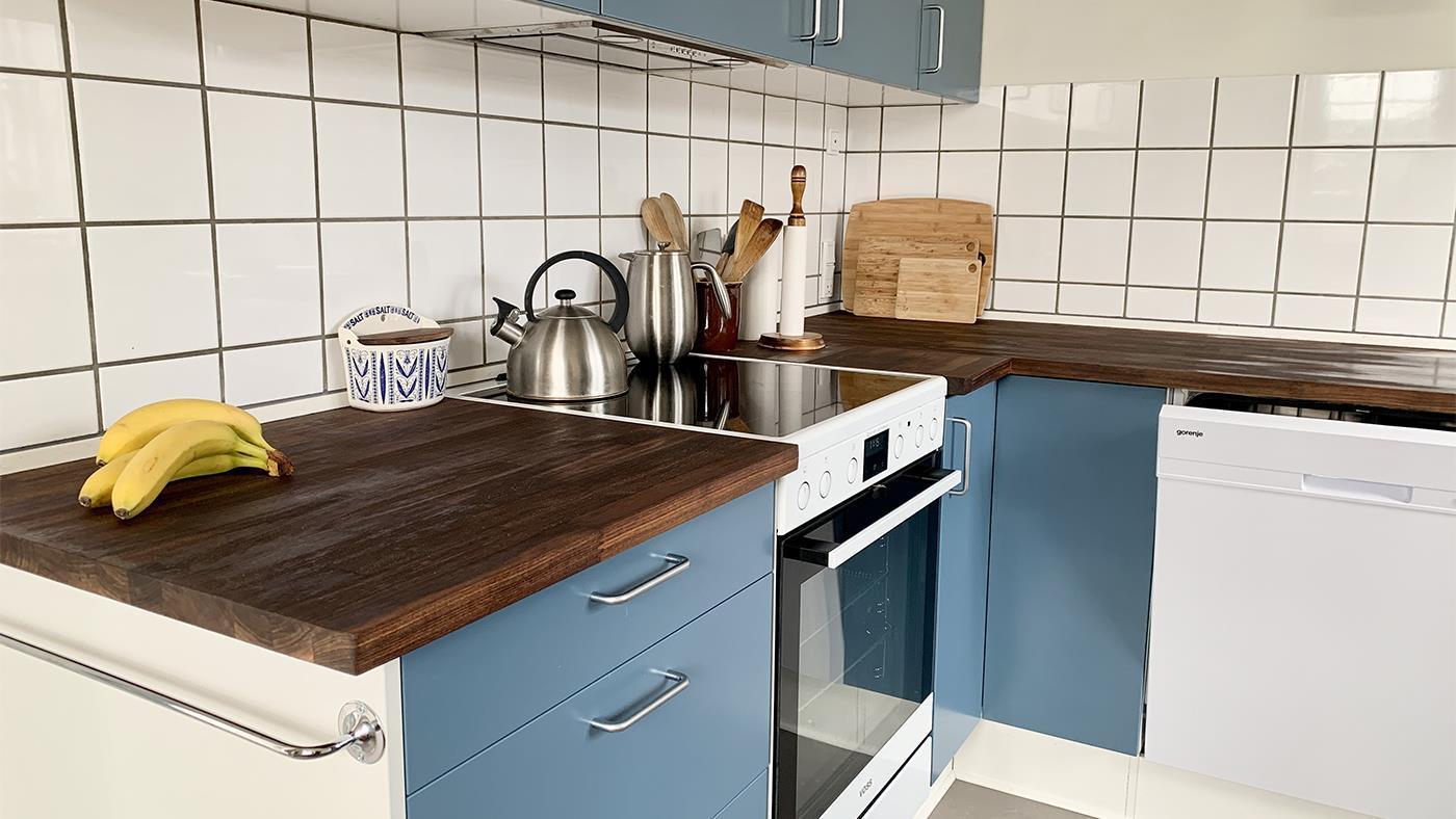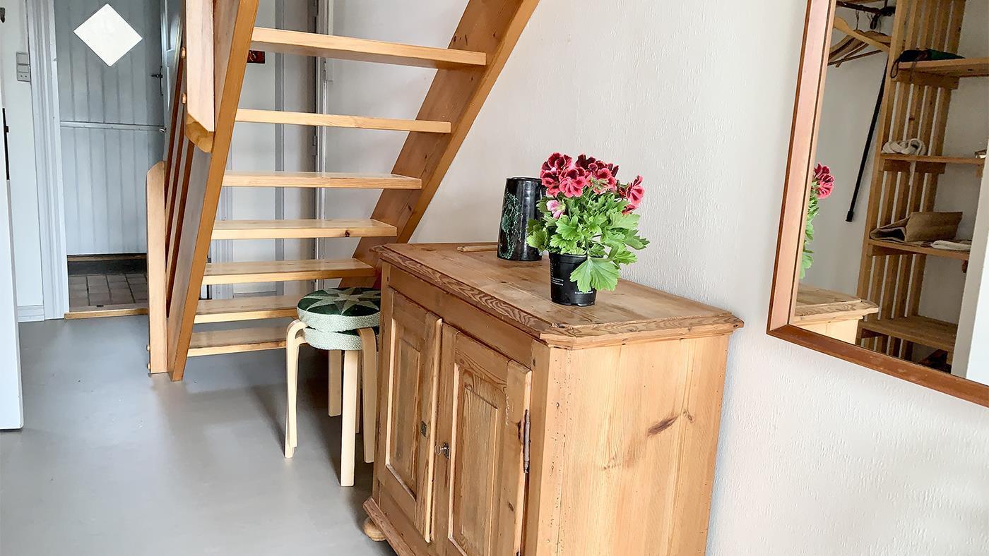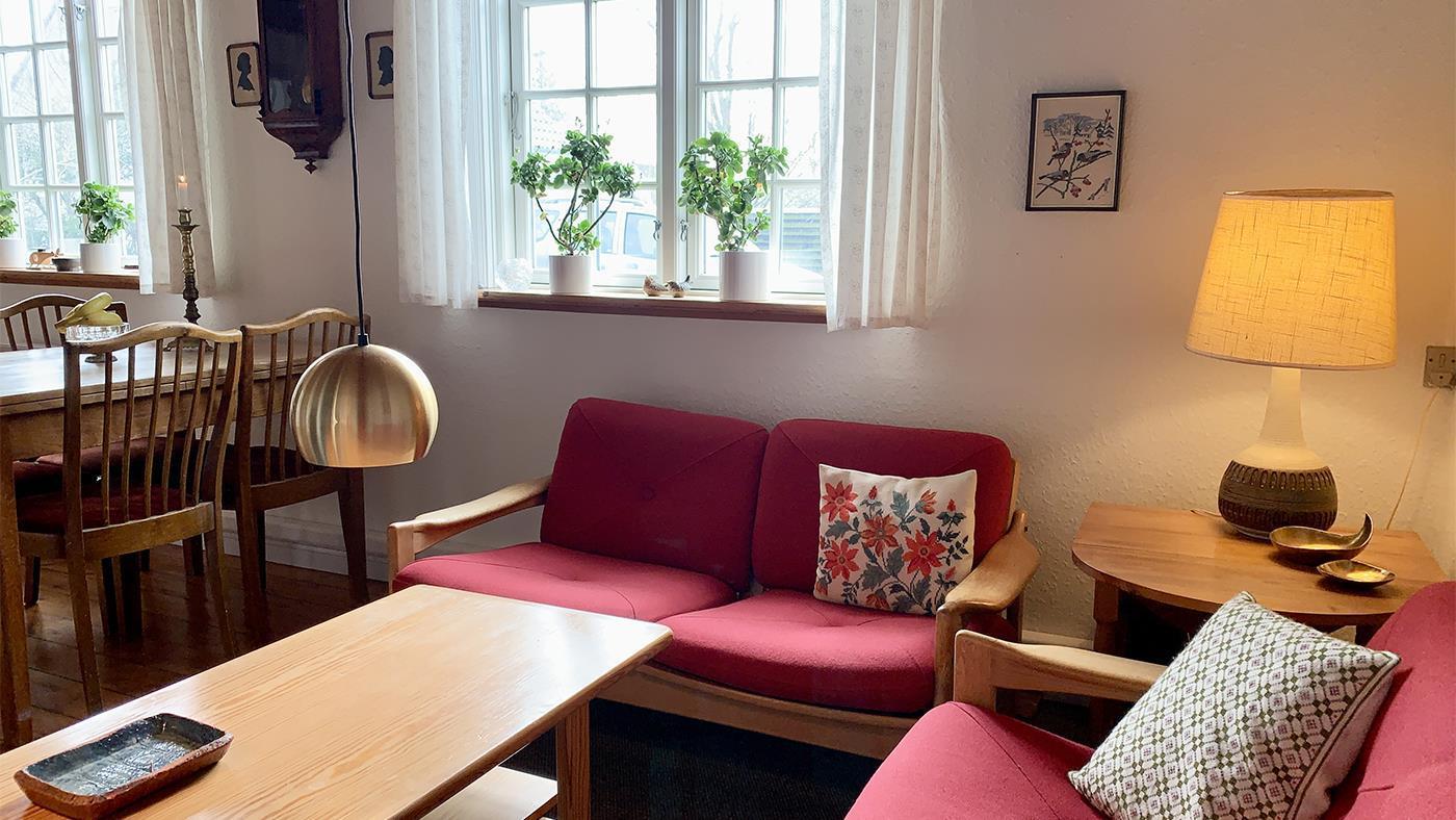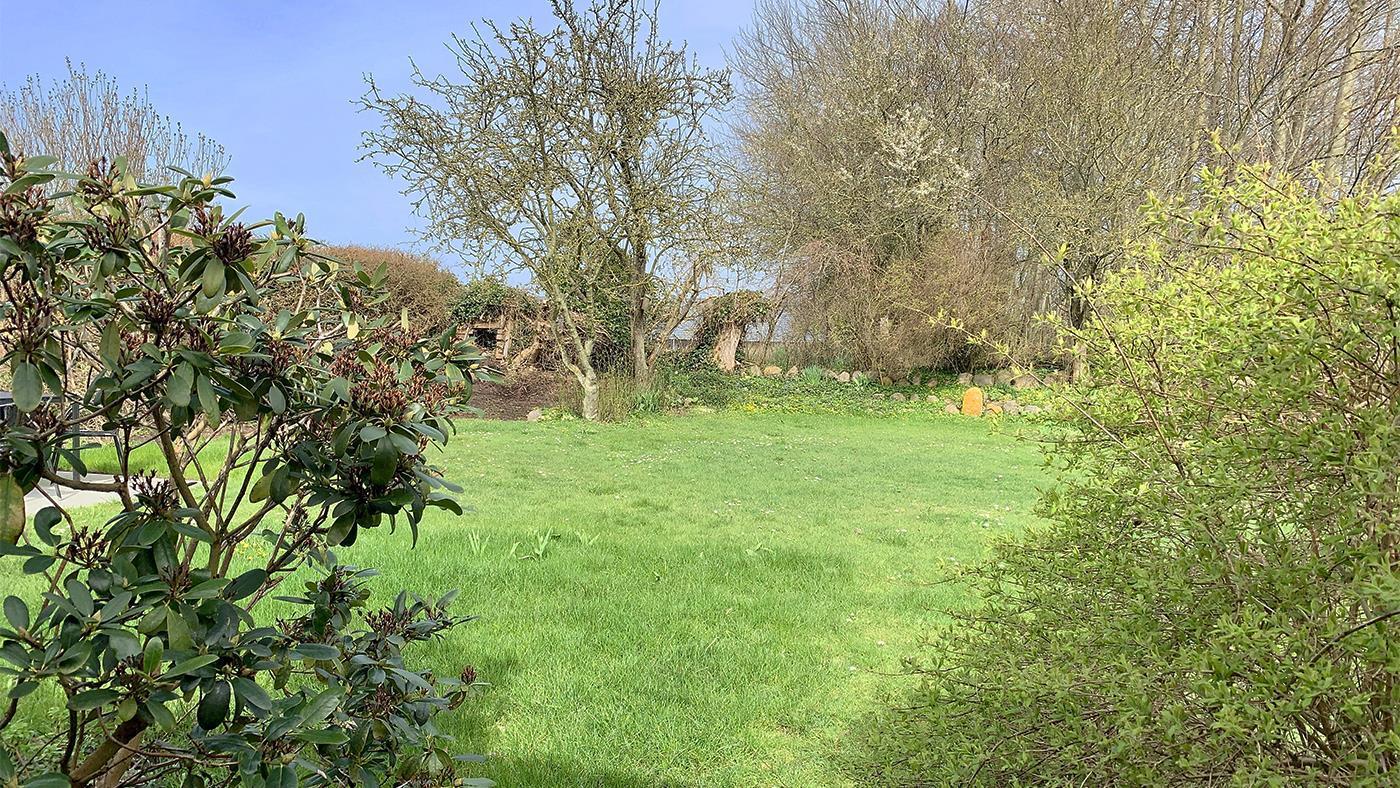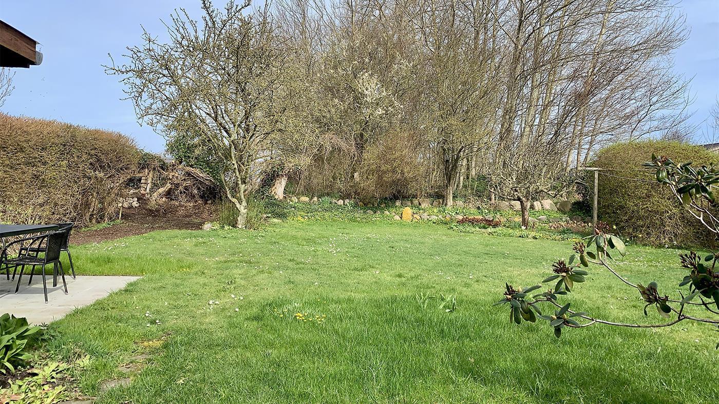 Bagved huset er der en dejlig have med flisebeblagt terrasse med havemøbler, hvor solen kan nydes morgen og aften.