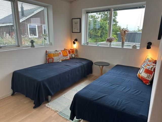Huset byder på et lyst og moderne køkken, der er i åben forbindelse med en hyggelig spiseplads – perfekt til fælles madlavning og samvær. Med tre rummelige soveværelser, et med dobbeltsenge og to med to enkeltsenge, er der plads til både familie og venner. Desuden er der to lækre badeværelser med brusekabine, som gør det nemt for alle at starte dagen friskt.