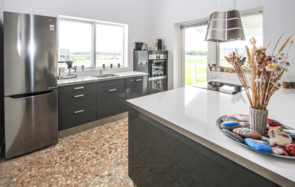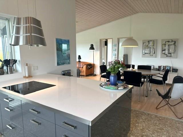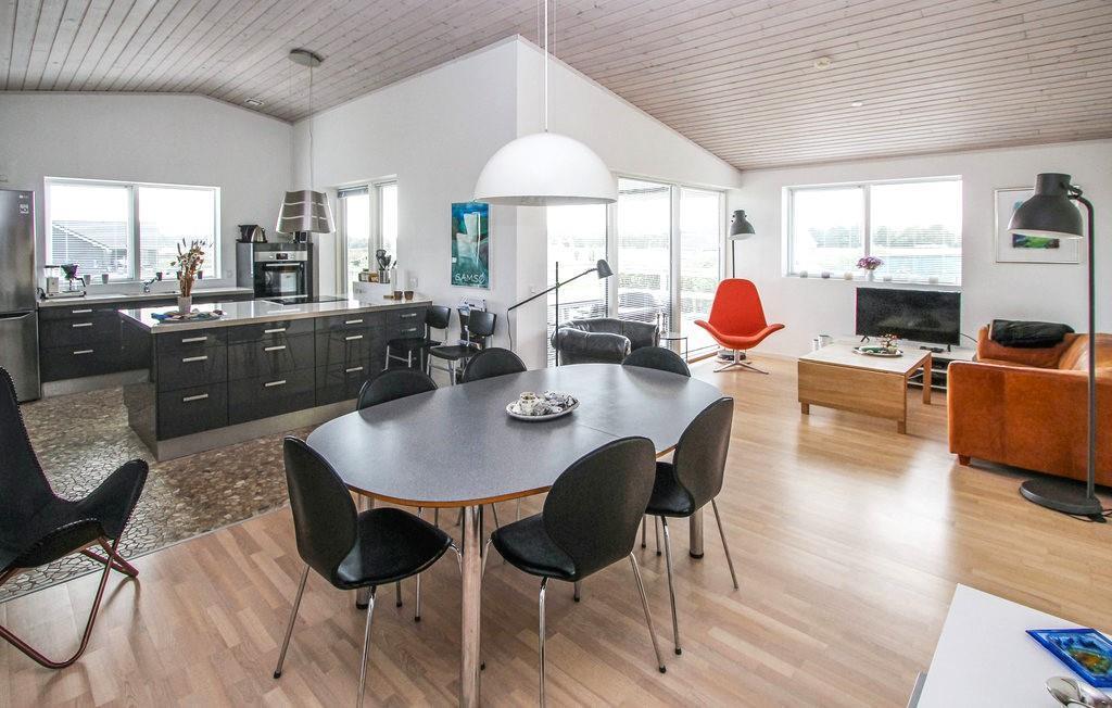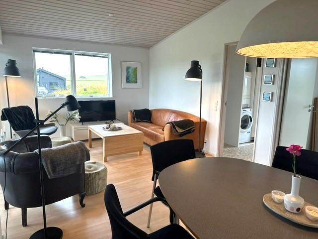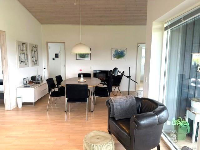 Den smagfulde indretning og de store vinduespartier i stuen skaber en lys og behagelig atmosfære, hvor I kan slappe af og nyde ferien.