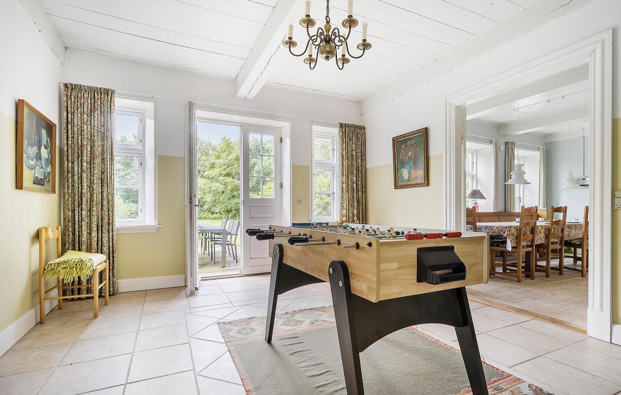 Tag den udvidede familie under armen og rejs til det sydlige Jylland, hvor I i Ballum får base i dette rummelige murstenshus. Omgivelserne emmer af landlig idyl, og indretningen fremtræder rustikt og attraktivt med velholdte trægulve, fin kunst på væggene og mange dejlige lysindfald gennem de sprossede vinduer. En god del af møblementet og køkkenet er udført i et rustikt træ-look, der skaber en særlig, landlig atmosfære til madlavningen i det veludstyrede køkken og måltiderne ved det store spisebord. Efter aftensmaden kan I udfordre flokken til et slag bordfodbold eller bordtennis, inden I smider en god film på tv'et med lidt lækre snacks på siden. Og måske I skal forkæle jer selv med en aftentur i spabadet?