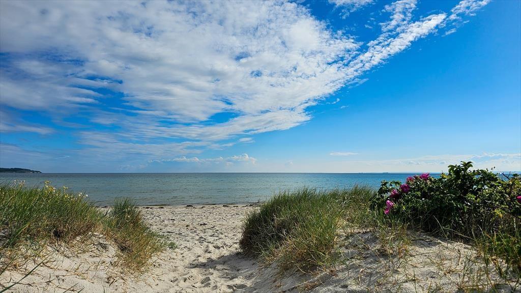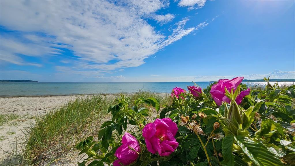 Huset er beliggende på en dejlig stor naturgrund med træterrasse og fantastisk havudsigt. Velegnet til leg og udendørsaktiviteter. Til huset hører skønne træterrasser med havemøbler, liggestole og grill. Hvis du er tidligt oppe, kan du opleve naturens egne dyr som går rundt og græsser. Havet kan du også høre fra terrassen så du skal bare slå dig ned og nyde det hele i fulde drag. Du kan også tage en morgendukkert på 2 minutter er du nede ved vandet og kan tage et opfriskende bad. Solen er på husets vand siden hele dagen, når den er fremme forstås. De øvrige dage er området egnet til lange gåture.
