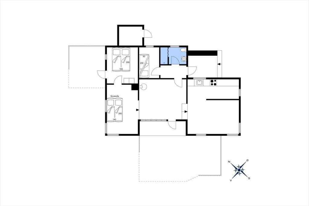 Du kommer her til et af de sjældnere strandhuse som ligger 150 meter fra havet. Huset har 2 værelser, køkken i åben forbindelse med stuen, samt naturligvis et dejligt badeværelse med gulvvarme. I stuen er der også fuld udsigt, så selv hvis vejret ikke er optimalt, kan du sidde indenfor og spille et spil samtidig med at udsigten nydes. Her er alt det der skal til for at holde en dejligt, rolig og afslappende ferie, det er bare med at komme afsted.