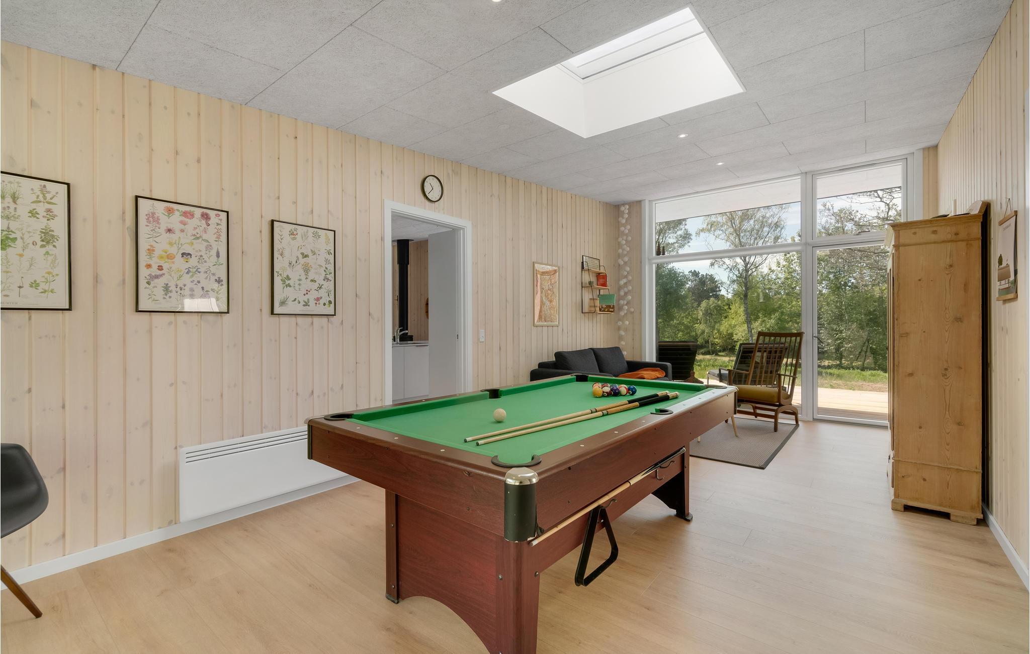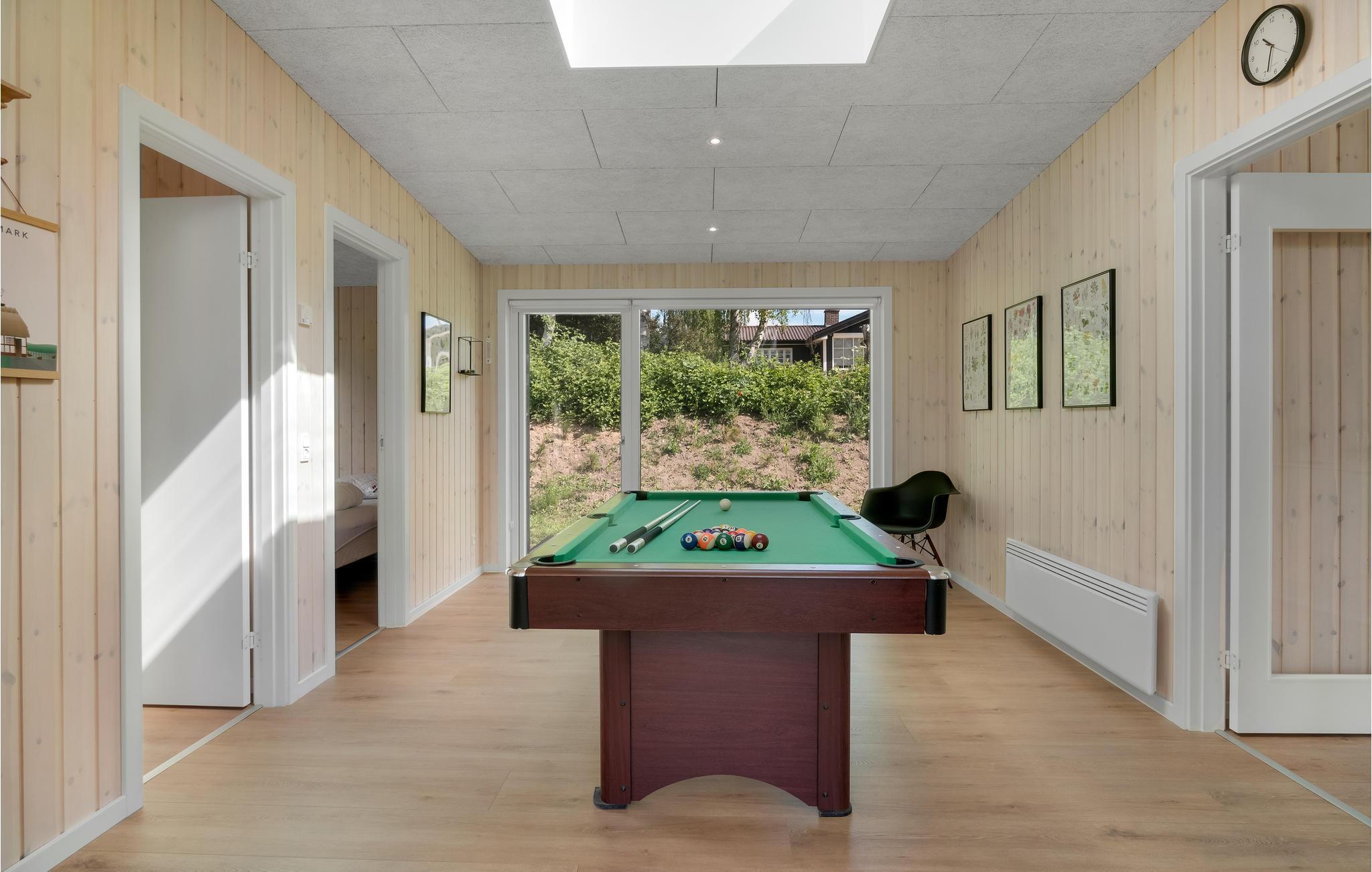 Huset tager sig flot og indbydende ud i alle rum, så glæd jer til dejlige fællesarealer og gode soveværelser, hvor man kan trække sig tilbage til, når man trænger til en alenestund. Læn jer tilbage i sofaerne efter en lang dag på farten - hvis I skal have varmen tilbage i tæerne, er det hurtigt at tænde op i brændeovnen. Giv jer god tid til billard og brætspil eller måske en lille pause i saunaen.