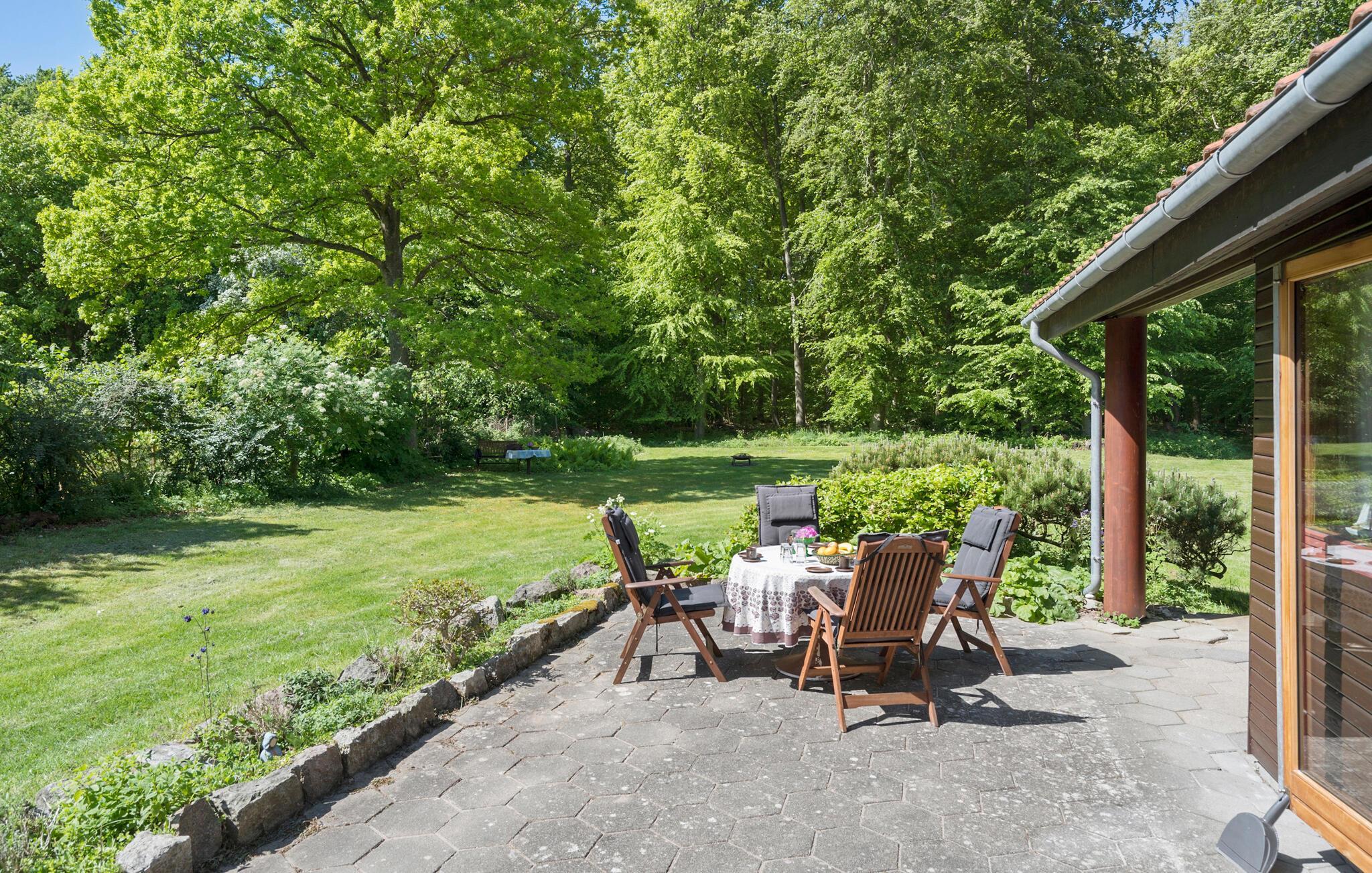 På de varme dage kan I trække udenfor og se frem til mange skønne timer i det gode vejr. Den store terrase er vendt mod syd og er overdækket, så I kan finde sol, skygge og læ efter behov i løbet af dagen. Børnene kan lege i haven, i sandkassen eller på gyngen, og måske I skal udfordre hele flokken til et slag fodbold eller kongespil?