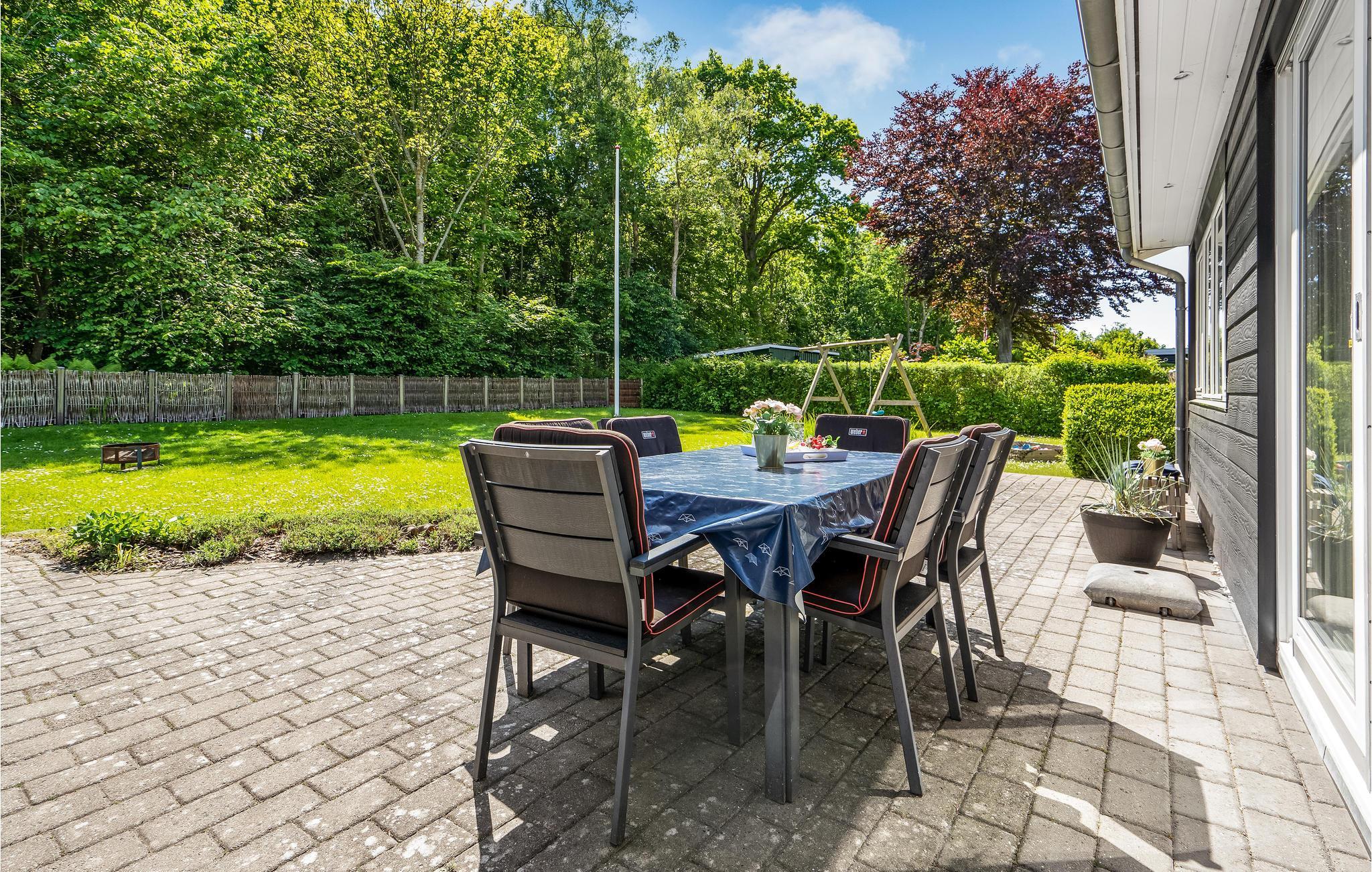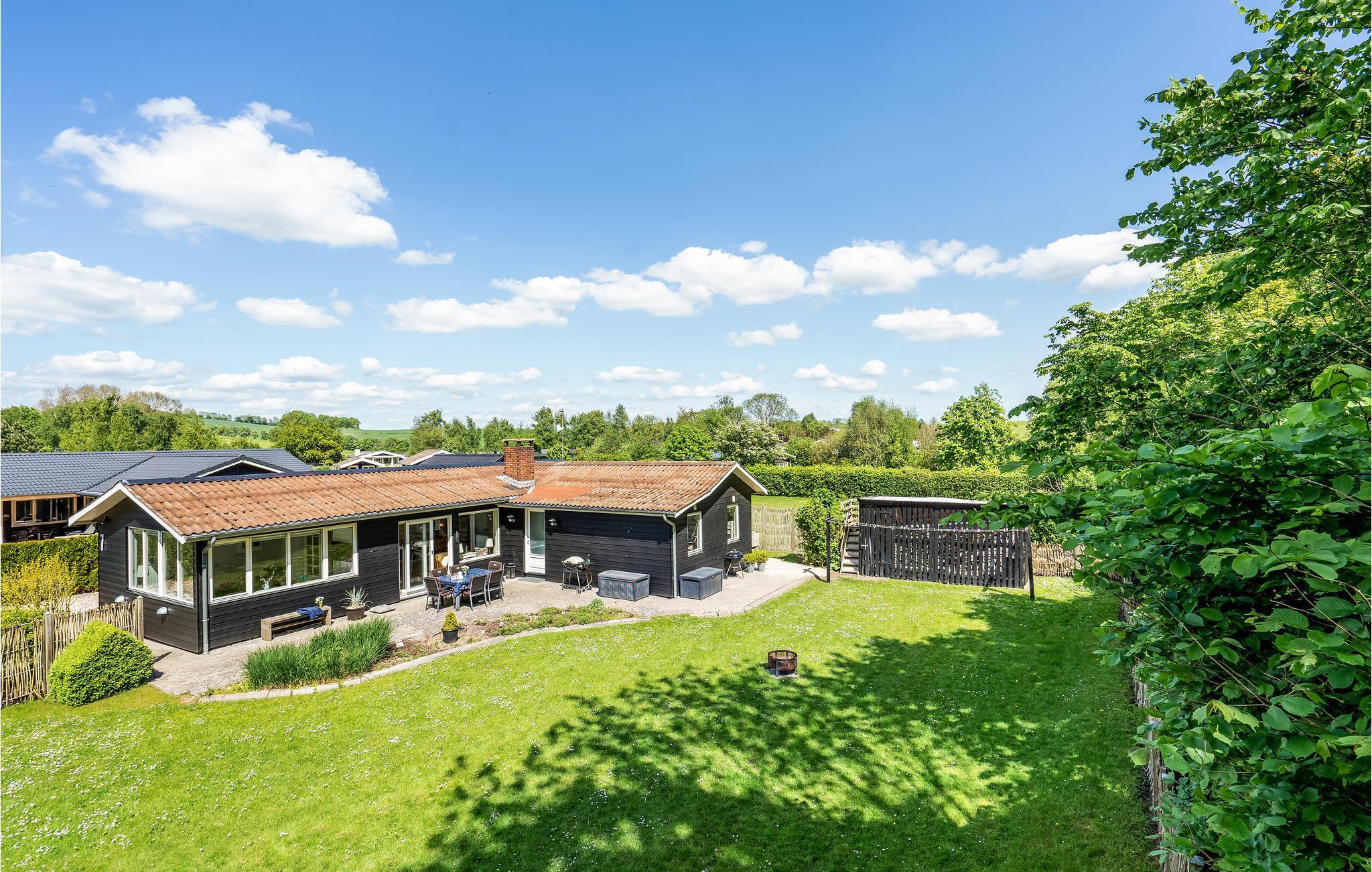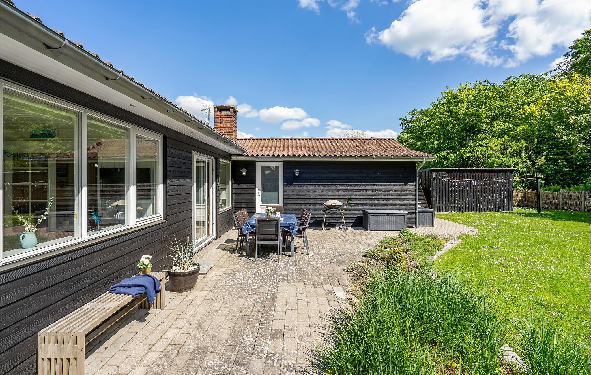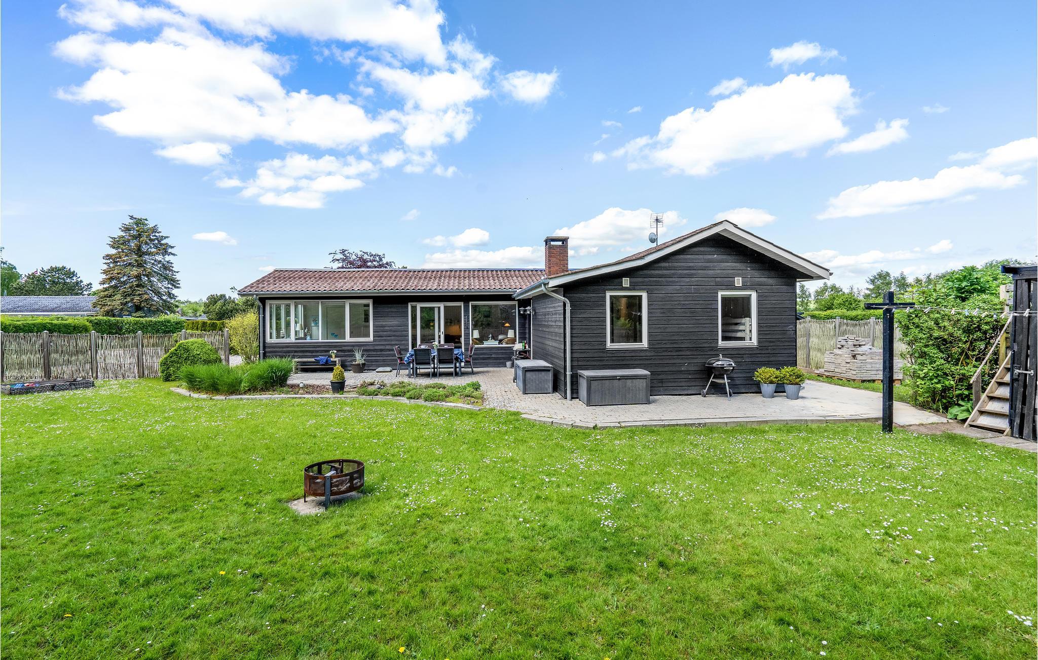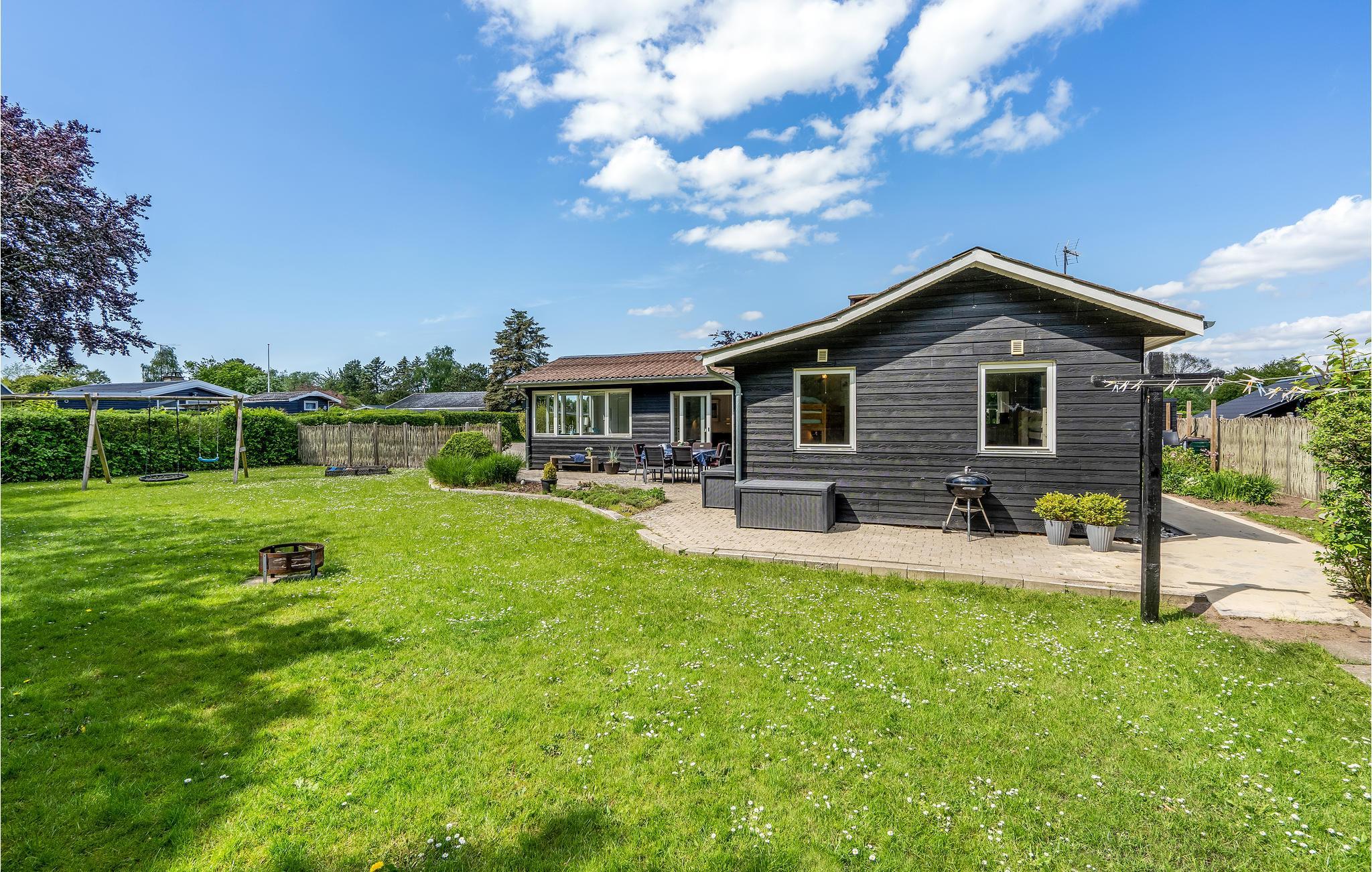 Glæd jer til dette skønne sommerhus, som er indrettet i rendyrket dansk sommerhusstil. Her kan I slappe af foran den lune brændeovn eller sætte jer med et glas vin i stuen efter en lang dag med oplevelser. Vinduerne lukker masser af lys ind i rummene og giver jer udsigt til en åben, grøn have. Terrassen er delvist overdækket og udstyret med havemøbler og grill, så her kan I tilbringe de lange, lyse sommeraftener. Der er også legestativer til de yngste gæster, herunder en gynge og en sandkasse.
