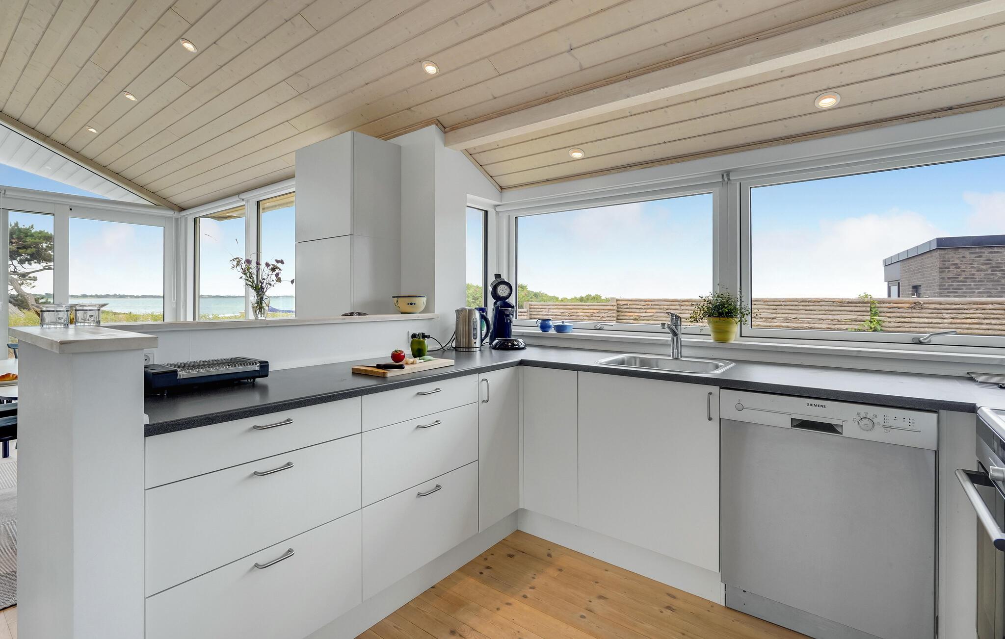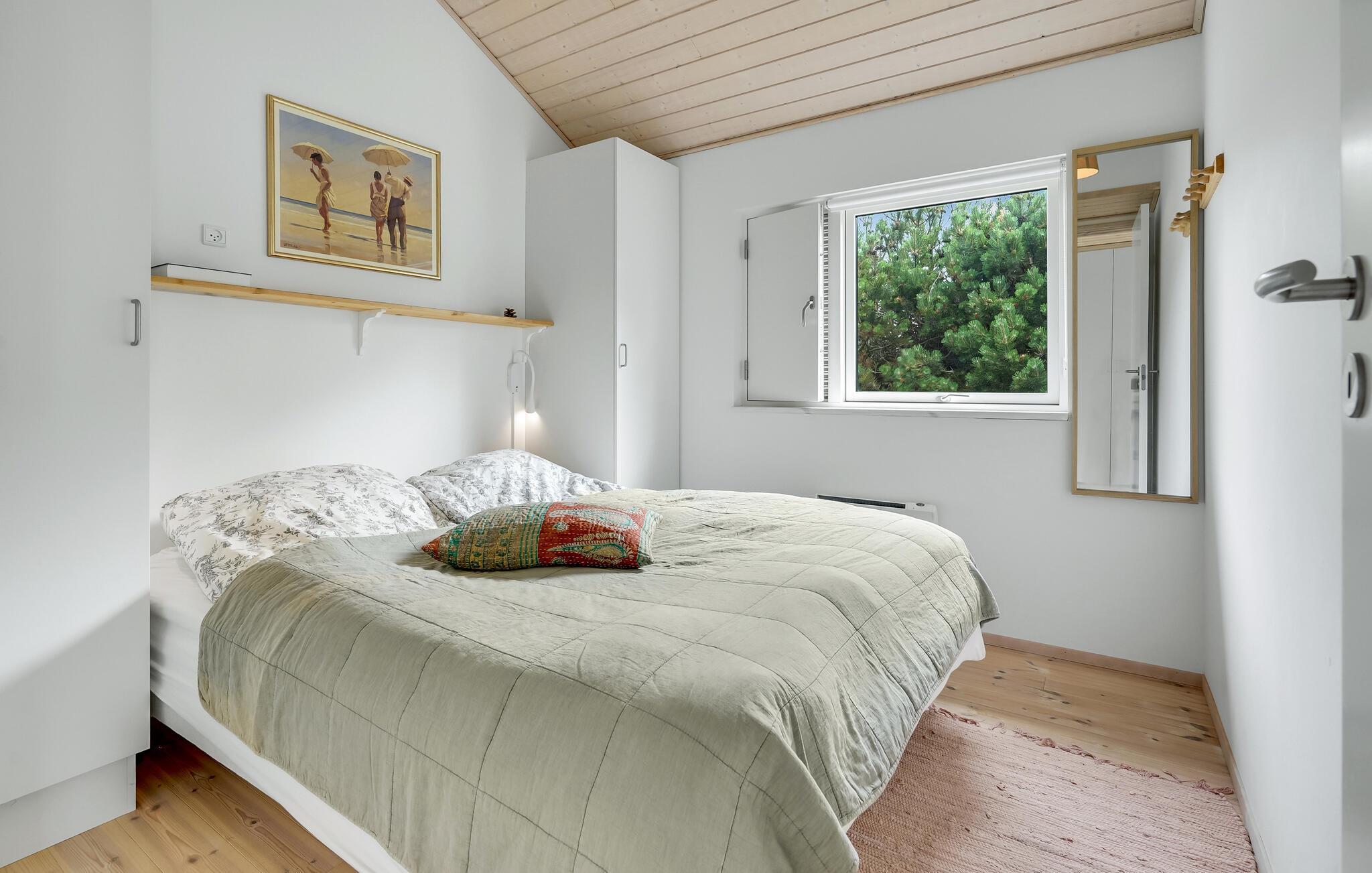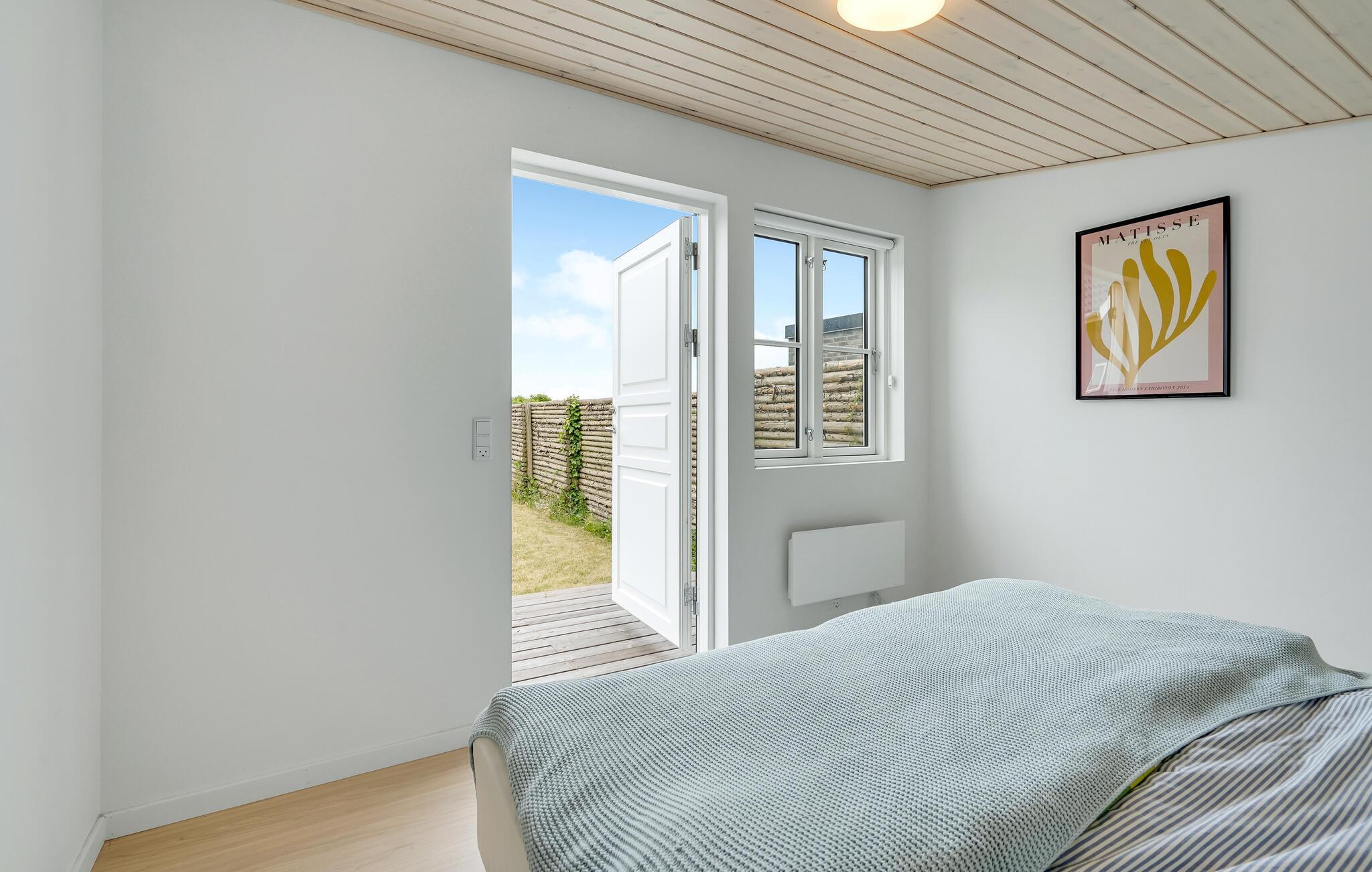 Dette lyse feriehus er det helt rette sted til jeres familieferie. Her kan I slappe af og nyde udsigten fra den første klitrække. Soveværelserne, både i hovedhuset og i annekset, giver jer rolige nætter og privatliv. Den moderne og hyggelige stue bliver jeres naturlige mødested. I kan tilberede feriens måltider i køkkenet, mens børnene leger ved spisebordet, eller I kan ligge behageligt i sofaen foran brændeovnen.