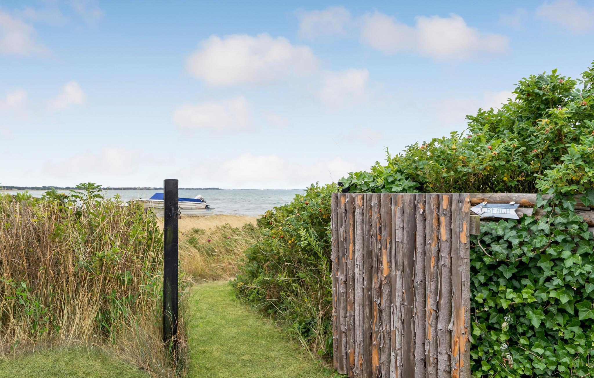 Den store terrasse er delvist overdækket og ligger i forlængelse af den lyse stue. Her kan I spise middag sammen og senere se solnedgangen. En lille sti fører ned til den lange sandstrand ved Bildsø. Stranden er særligt børnevenlig og vil få børnenes øjne til at stråle.