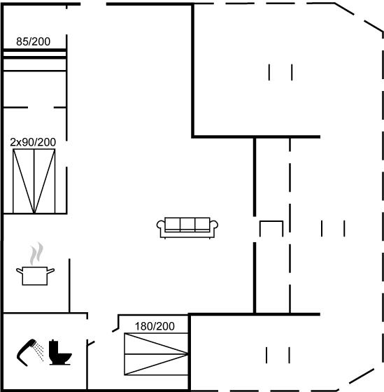 Der er i alt 3 soveværelser. Sovepladserne fordeler sig på: 4 sovepladser i dobbeltsenge. 2 sovepladser i køjeseng.