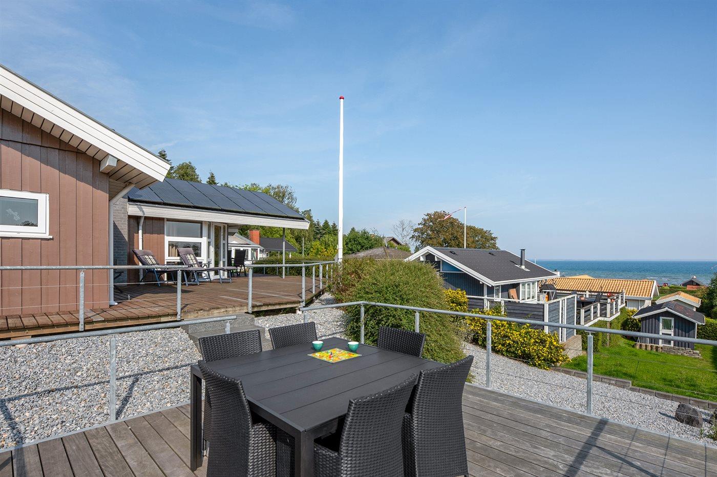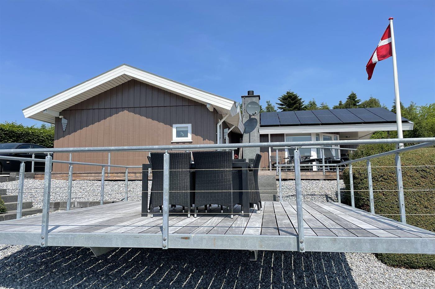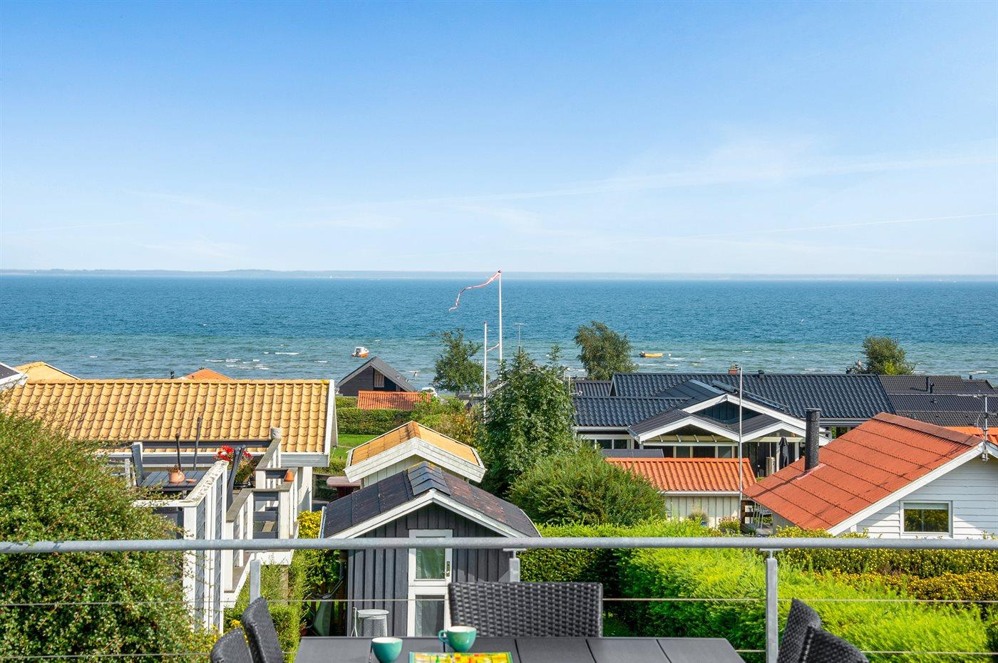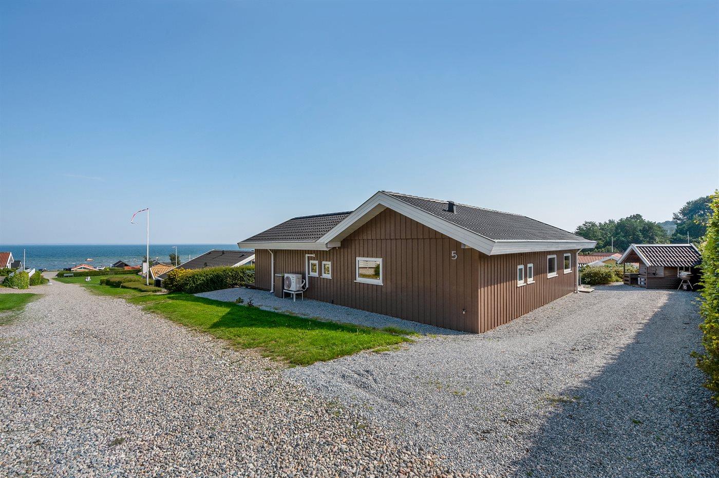 Skønt sommerhus beliggende højt på en skrånende grund lige ved vandet og børnevenlig badestrand i et roligt og kuperet område. Fra såvel hus som grund har man en fantastisk panoramaudsigt over havet og det naturskønne område.