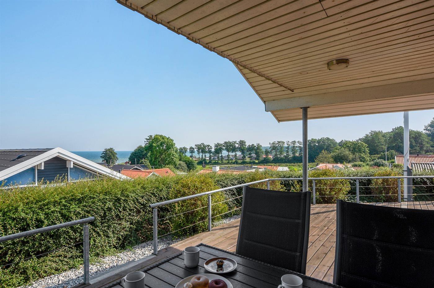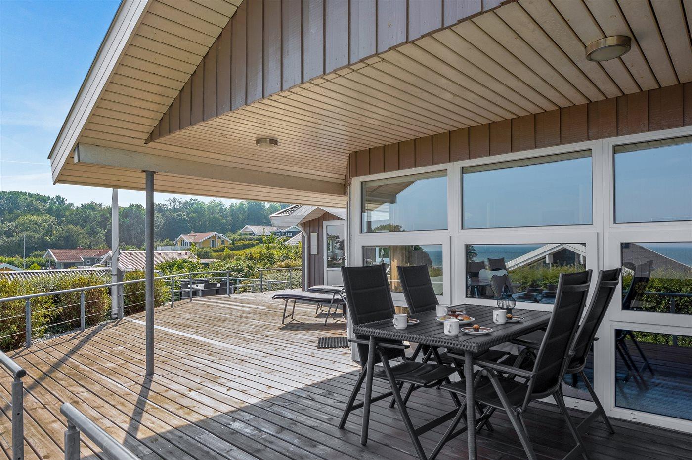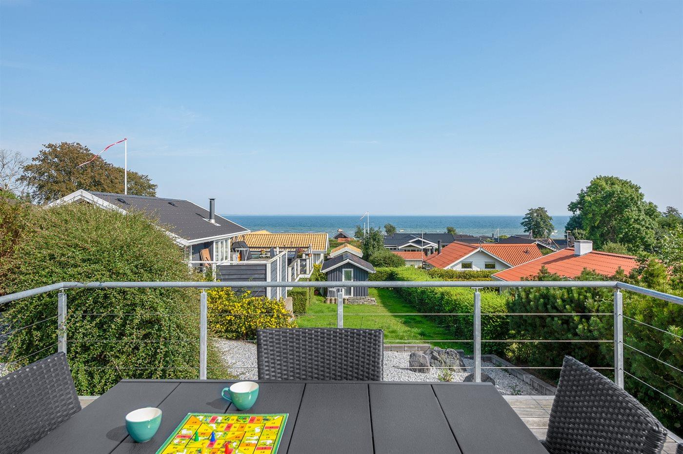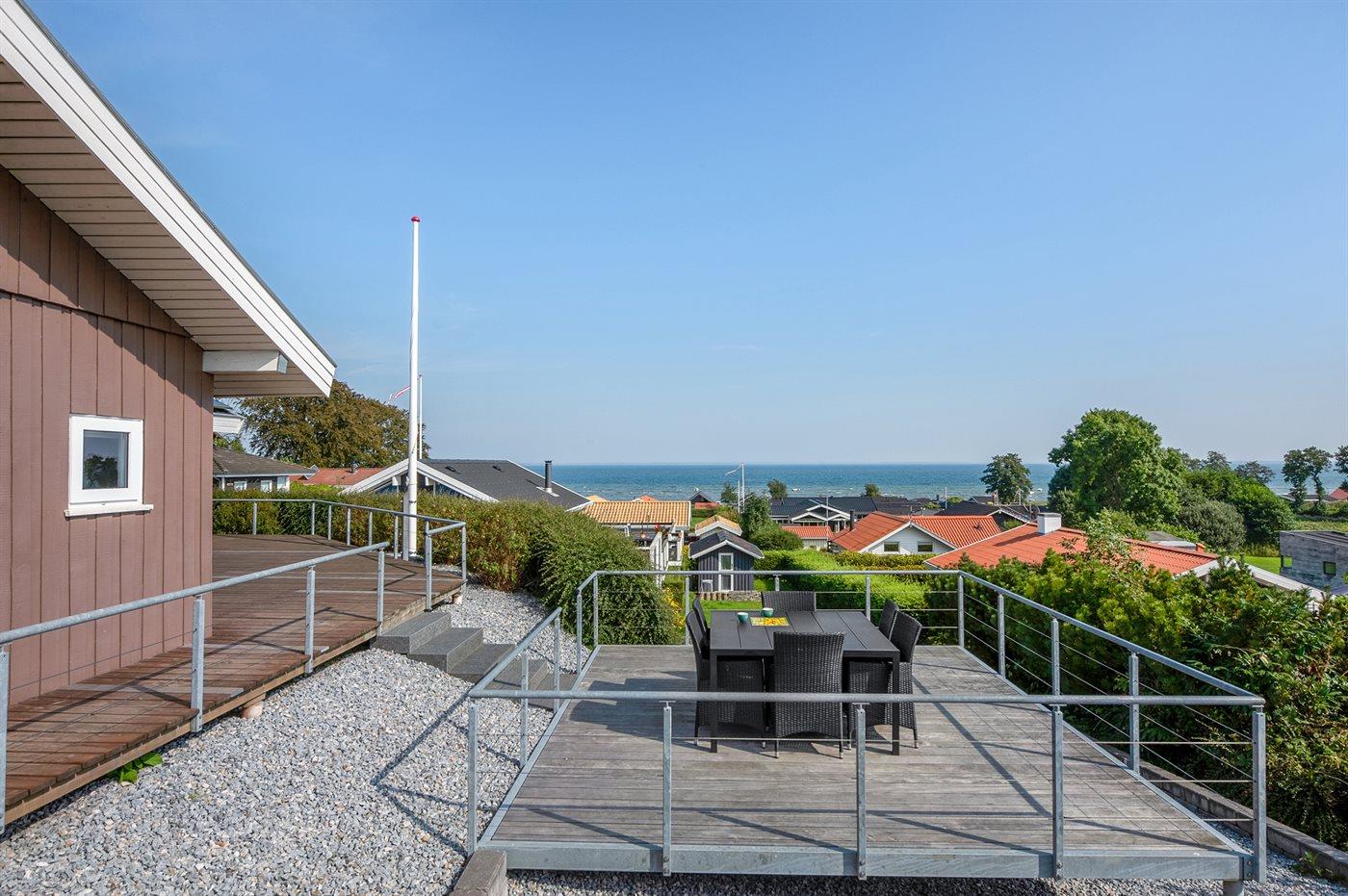 Skønt sommerhus beliggende højt på en skrånende grund lige ved vandet og børnevenlig badestrand i et roligt og kuperet område. Fra såvel hus som grund har man en fantastisk panoramaudsigt over havet og det naturskønne område.