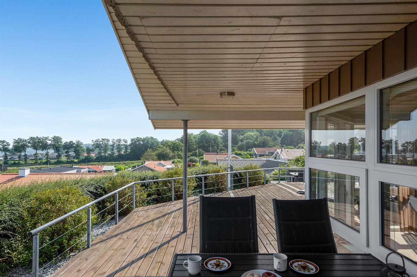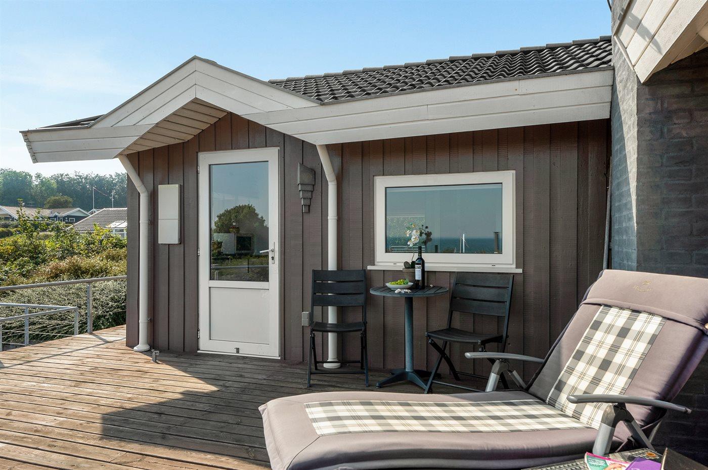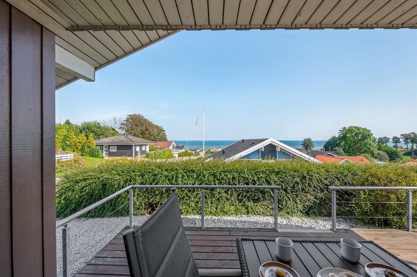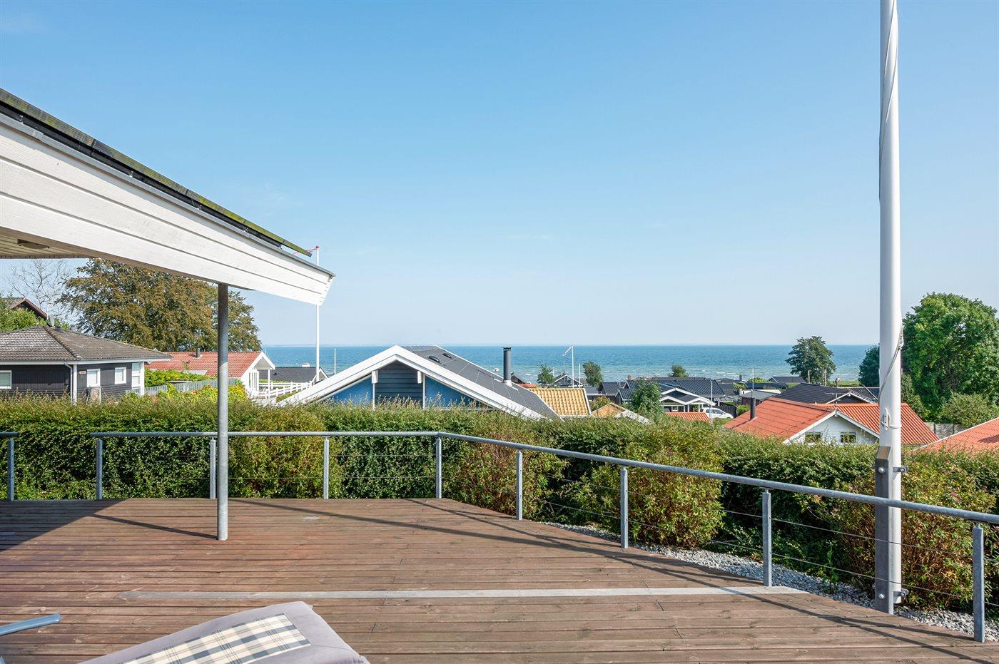 Skønt sommerhus beliggende højt på en skrånende grund lige ved vandet og børnevenlig badestrand i et roligt og kuperet område. Fra såvel hus som grund har man en fantastisk panoramaudsigt over havet og det naturskønne område.