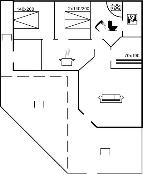 Der er i alt 3 soveværelser. Sovepladserne fordeler sig på: 4 sovepladser i dobbeltsenge. 2 sovepladser i køjeseng.
