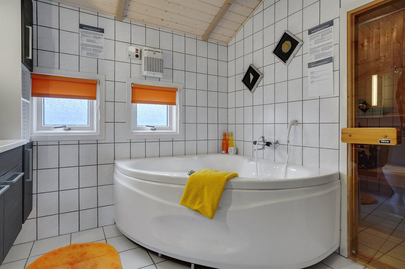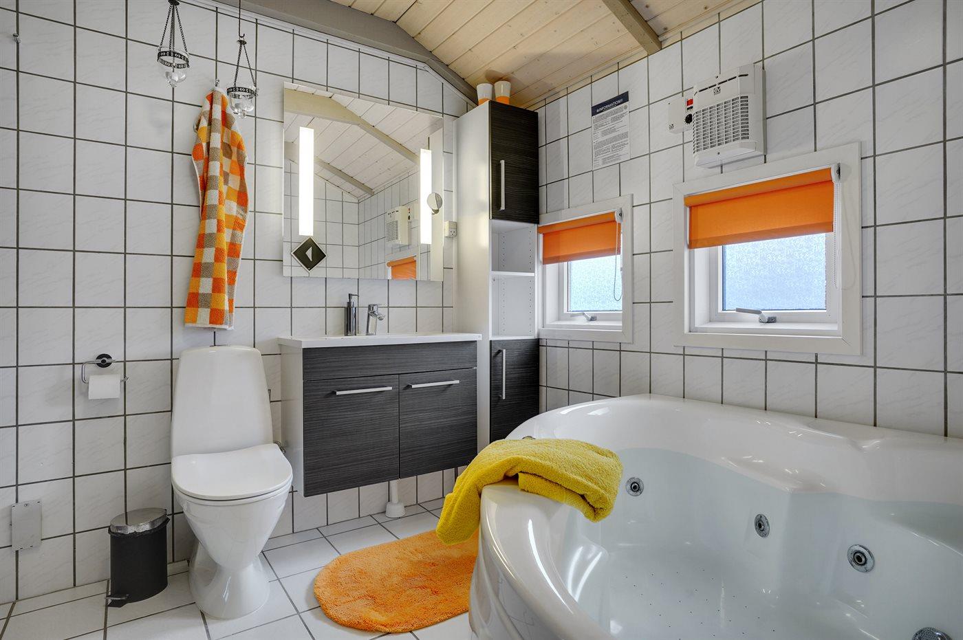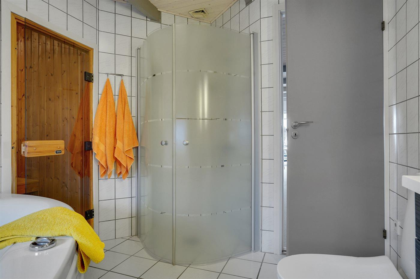 Der er 1 badeværelse med bruseniche og 1 toilet.. Der er gulvvarme på 1 badeværelse. I saunaen er der mulighed for afslapning.