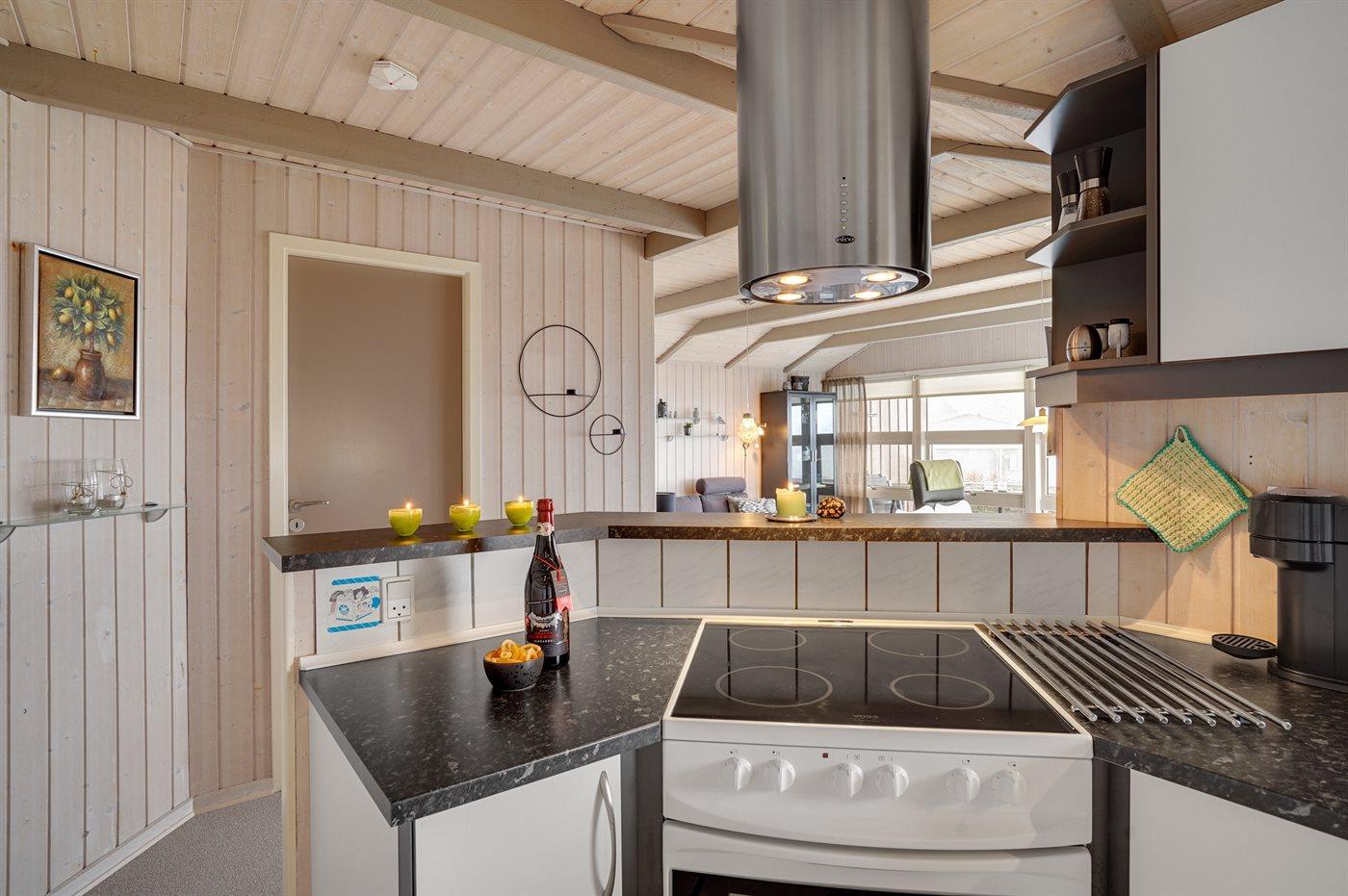 Køkkenet er udstyret med 1 køleskab. Der er 4 keramiske kogeplader, varmluftovn, mikrobølgeovn samt opvaskemaskine.