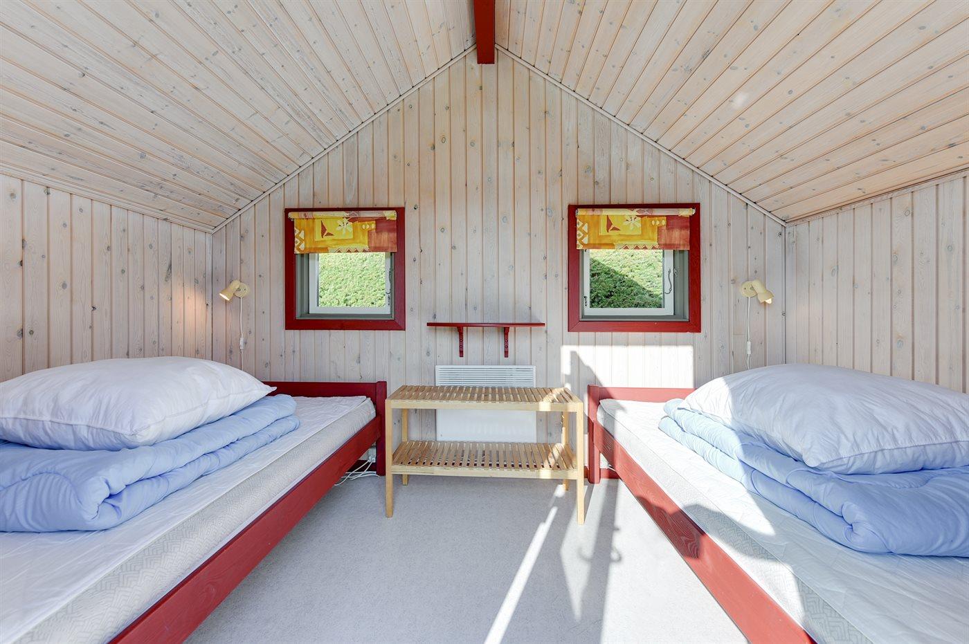 Der er i alt 3 soveværelser. Sovepladserne fordeler sig på: 2 sovepladser i dobbeltseng. 4 sovepladser i enkeltsenge. 2 af disse sovepladser befinder sig i et anneks. Derudover er der 1 stk. barneseng.