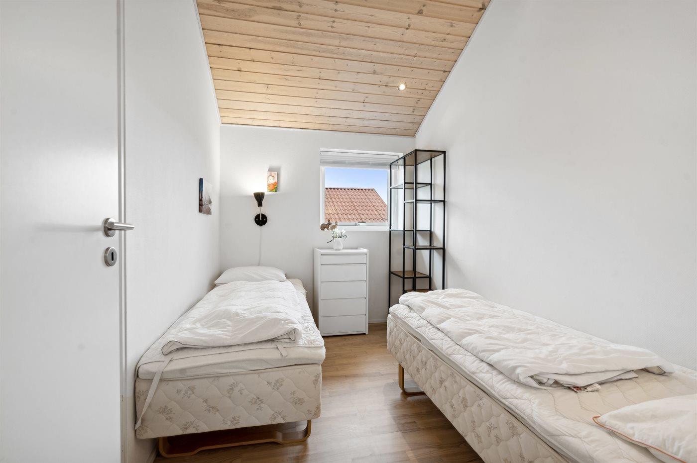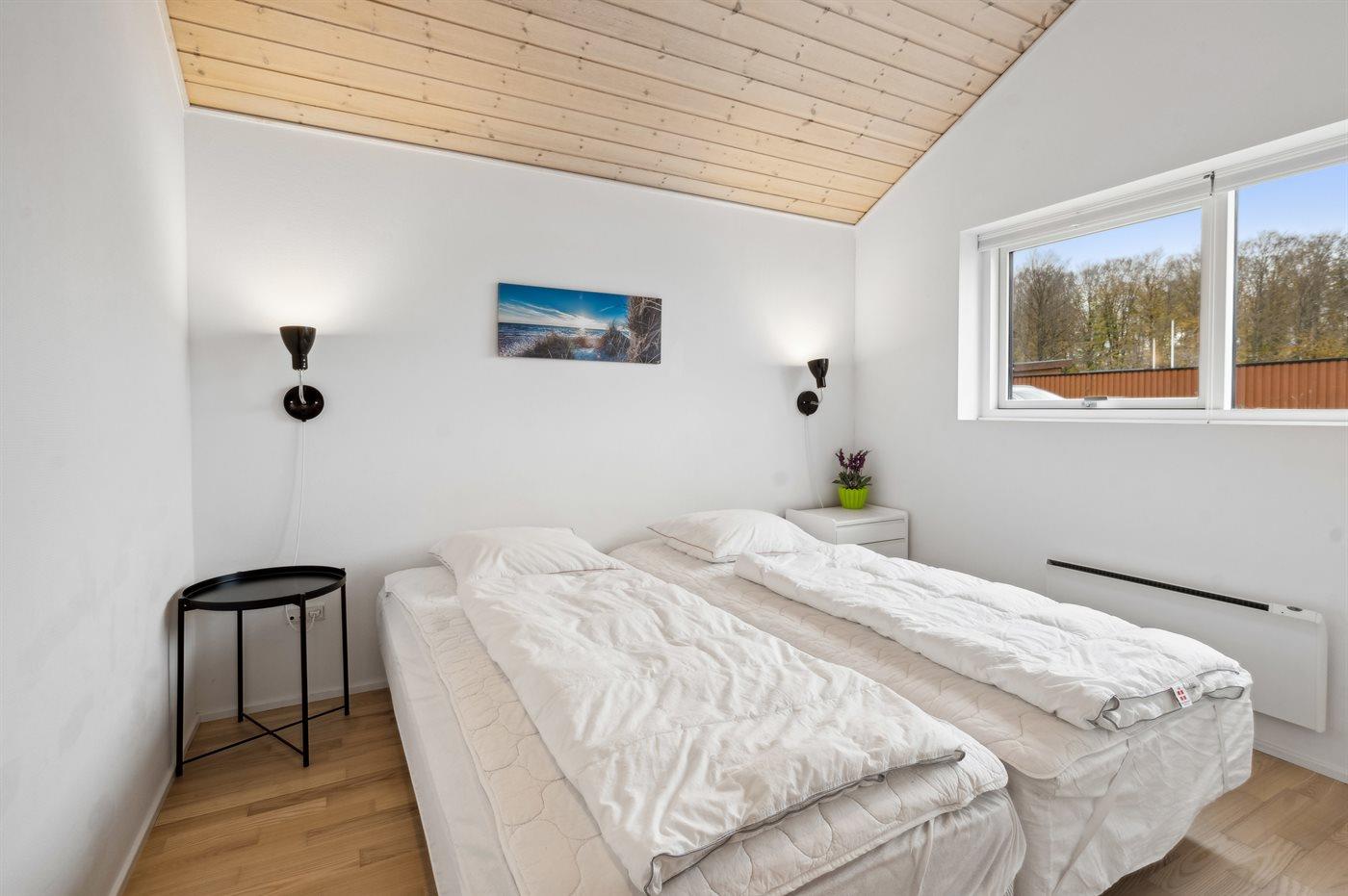 Der er i alt 3 soveværelser. Sovepladserne fordeler sig på: 2 sovepladser i dobbeltseng. 4 sovepladser i enkeltsenge. Derudover er der 1 stk. barneseng.