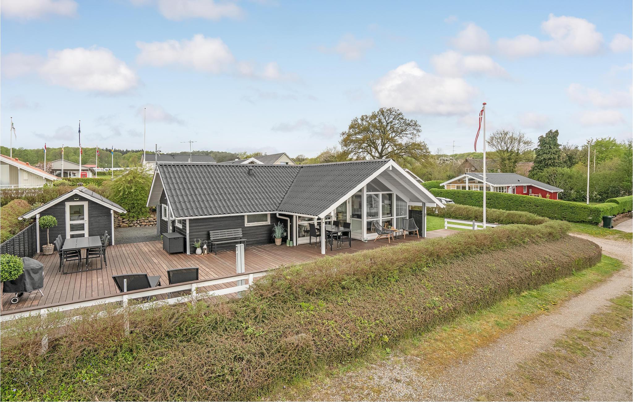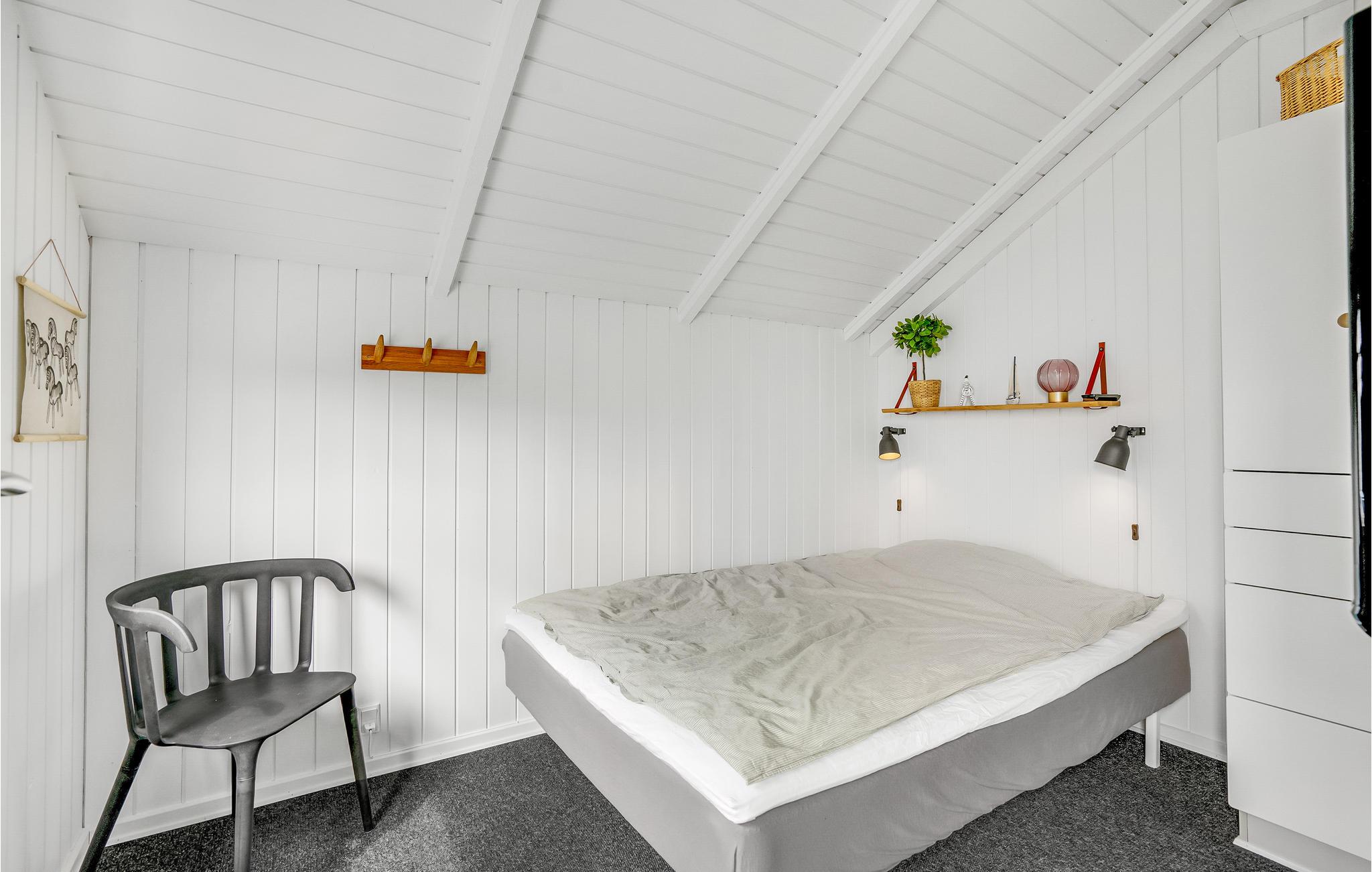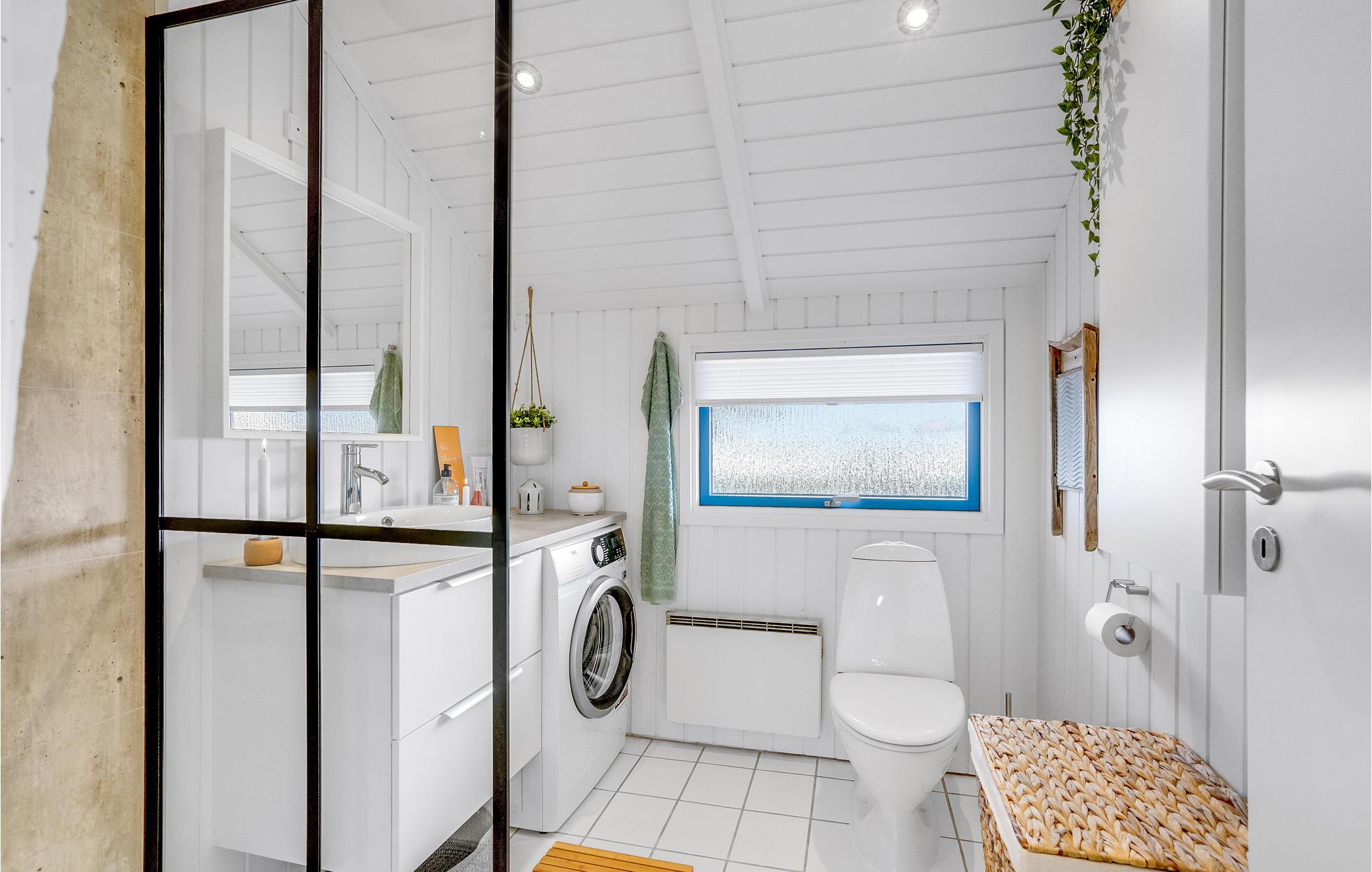 Huset er placeret ved Binderup Strand og har tre soveværelser med plads til fem personer. Der falder et dejligt lys ind gennem de store vinduer i stuen, og indretningen er flot og moderne. Nyd de kølige aftener i skæret fra brændeovnen og sid længe på terrassen i de lyse nætters tid.