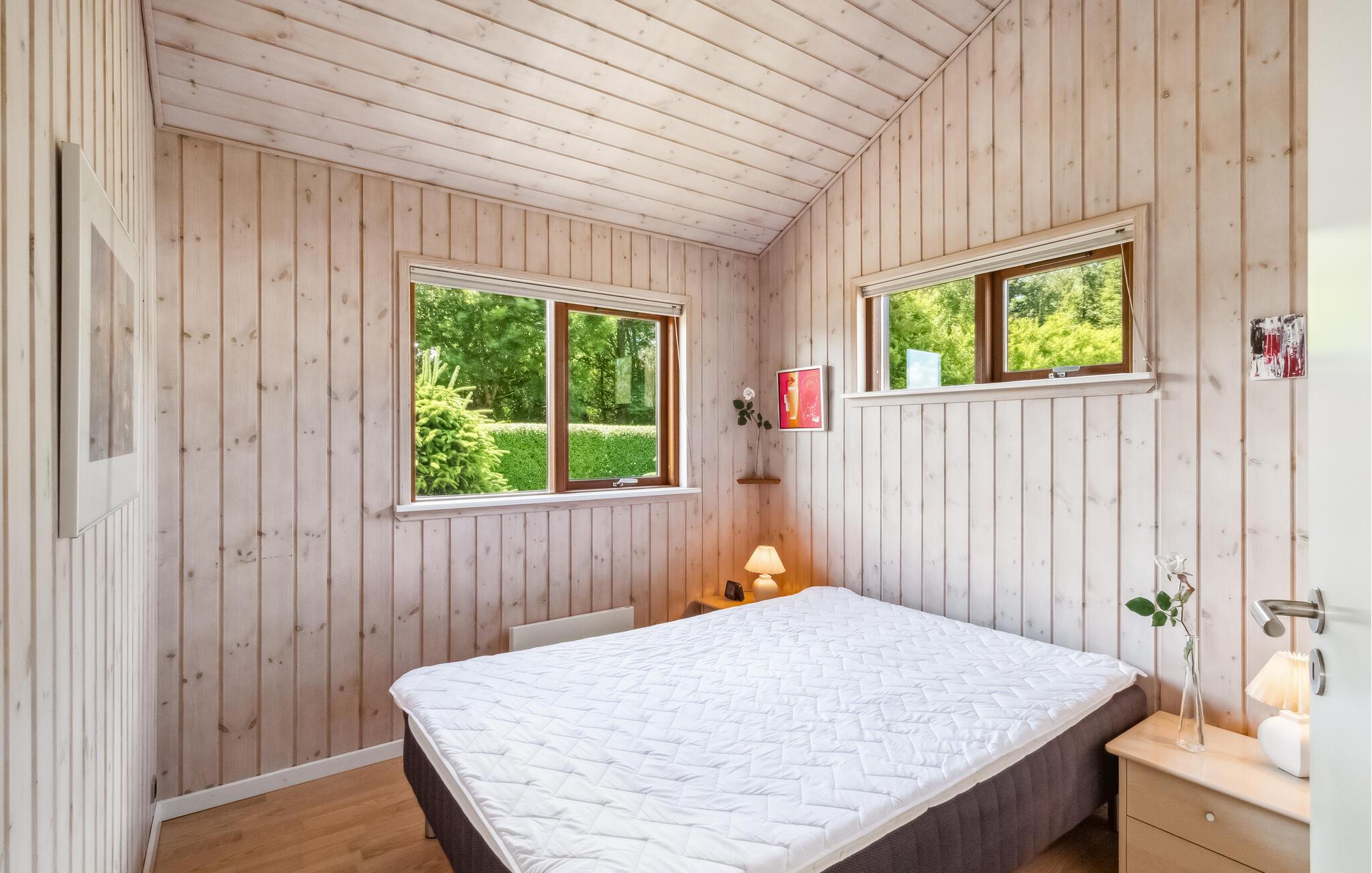 Glæd jer til en afslappende ferie i dette flotte feriehus af træ i Binderup.