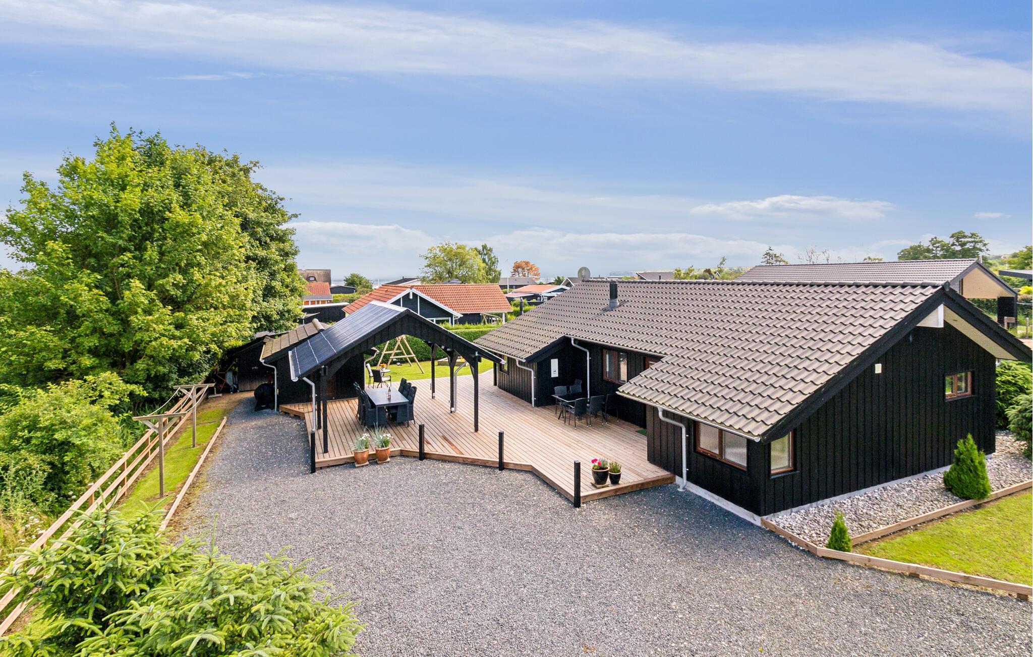 Flot og moderne træhus i Binderup nær strand og natur, med sauna, spabad og stor terrasse til afslapning.