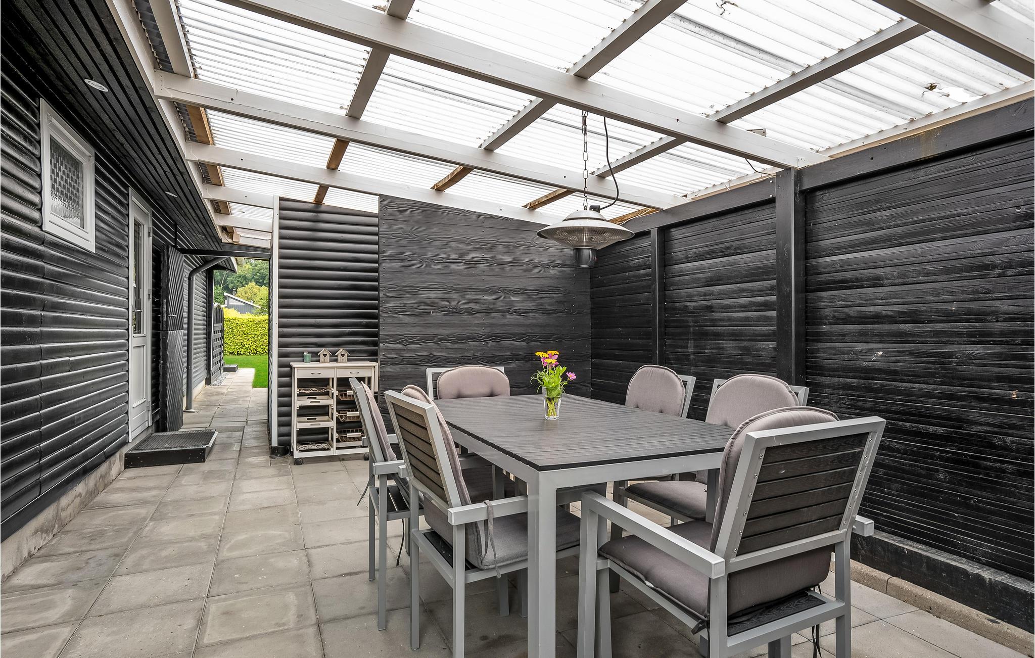 Binderup Strandpark er et roligt feriehusområde ved den børnevenlige Binderup strand. Huset er velholdt og godt indrettet med stuen, der ligger i åben forbindelse med spisepladsen og køkkenet. Her står også den hyggespredende brændeovn (kun til 6 mm træpiller). I den skønne lukkede have er der flere terrasser, hvor I kan følge solen hele dagen. Fra en af terrasserne er der udsigt over havet. Der er en lukket overdækket gårdhave som giver mulighed for at tilbringe selv de mere kølige aftener udenfor. Lige i nærheden af huset er der en åben plads med mulighed for boldspil. Efter kun 20 minutters kørsel kommer I til Kolding, der med sine butikker og seværdigheder altid er et besøg værd.