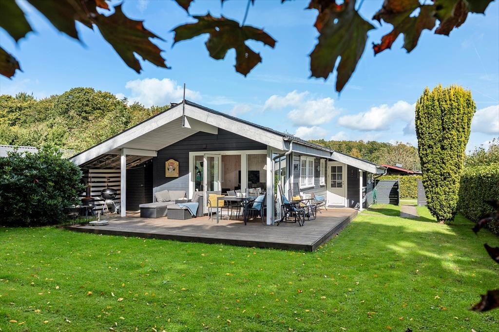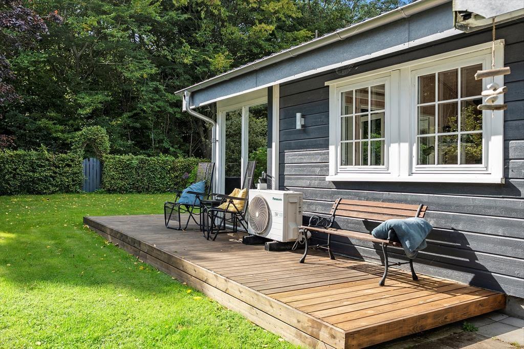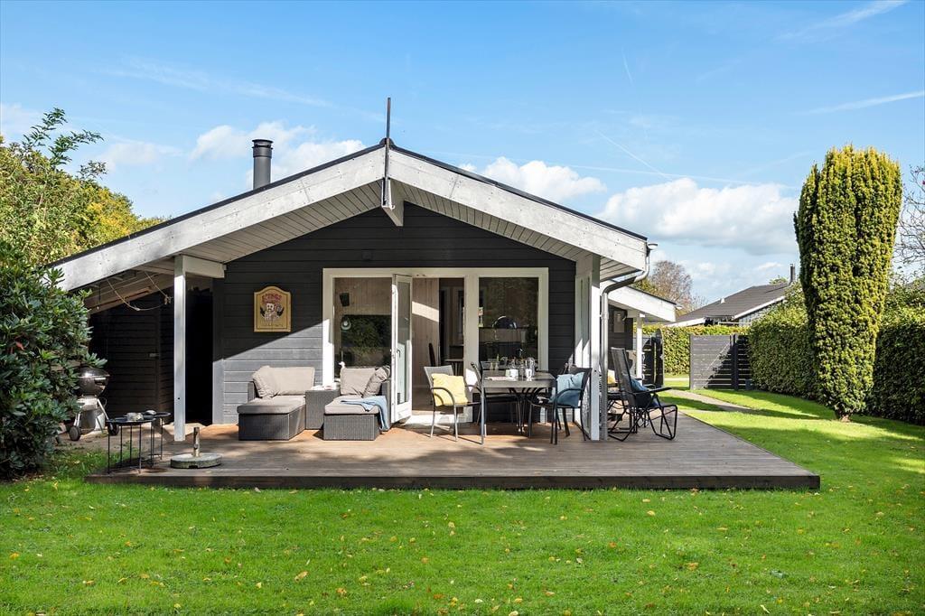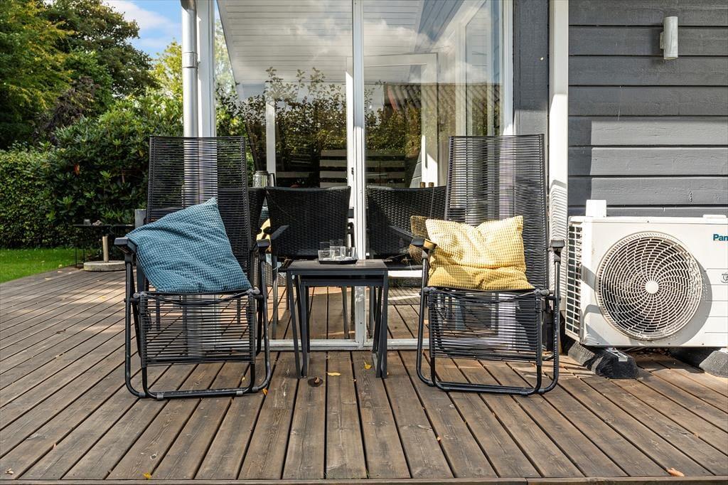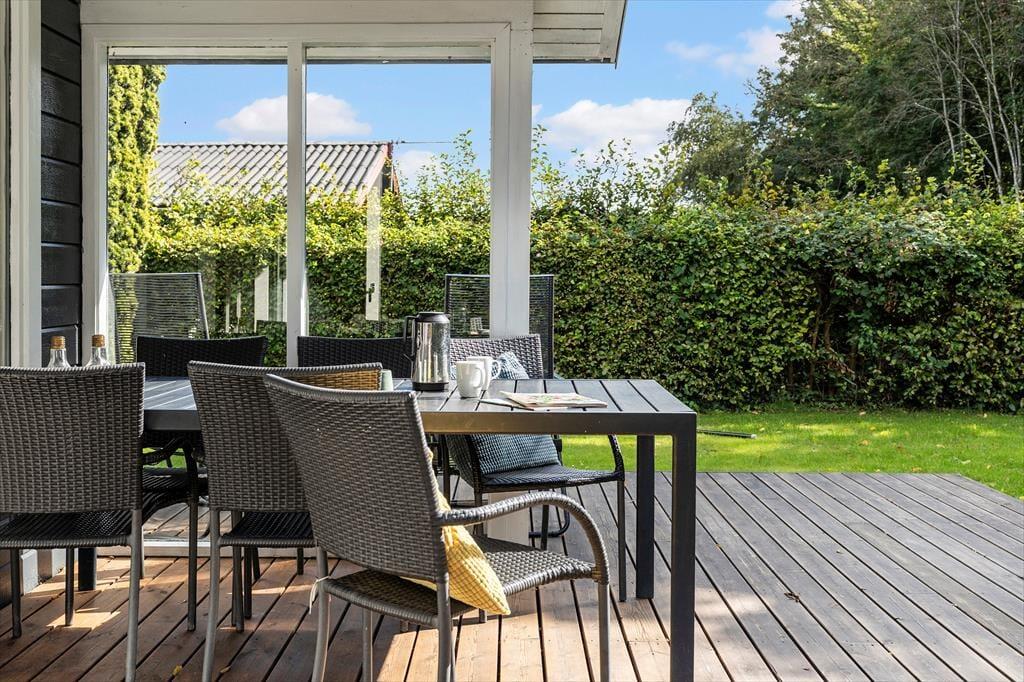 Sommerhusets delvist overdækkede træterrasse bliver hurtigt et yndet opholdssted i løbet af ferien. Her kan du nyde morgenkaffen i læ for duggen, mens dagens første solstråler langsomt varmer luften, eller samle familien til lange, hyggelige aftener med grill og gode samtaler. Terrassen giver mulighed for at opholde sig ude i næsten al slags vejr, og her kan du finde både sol og skygge dagen igennem. Den omkringliggende grund indbyder til leg, afslapning og stille stunder, hvor du kan lytte til fuglenes kvidren og mærke feriestemningen brede sig. Med den korte afstand til stranden er det nemt at tage en spontan tur til vandet – måske med et håndklæde over skulderen og sand mellem tæerne få minutter senere. Efter en dag ved havet kan du vende tilbage til sommerhuset, skylle saltvandet af og fortsætte ferien i rolige og private omgivelser.