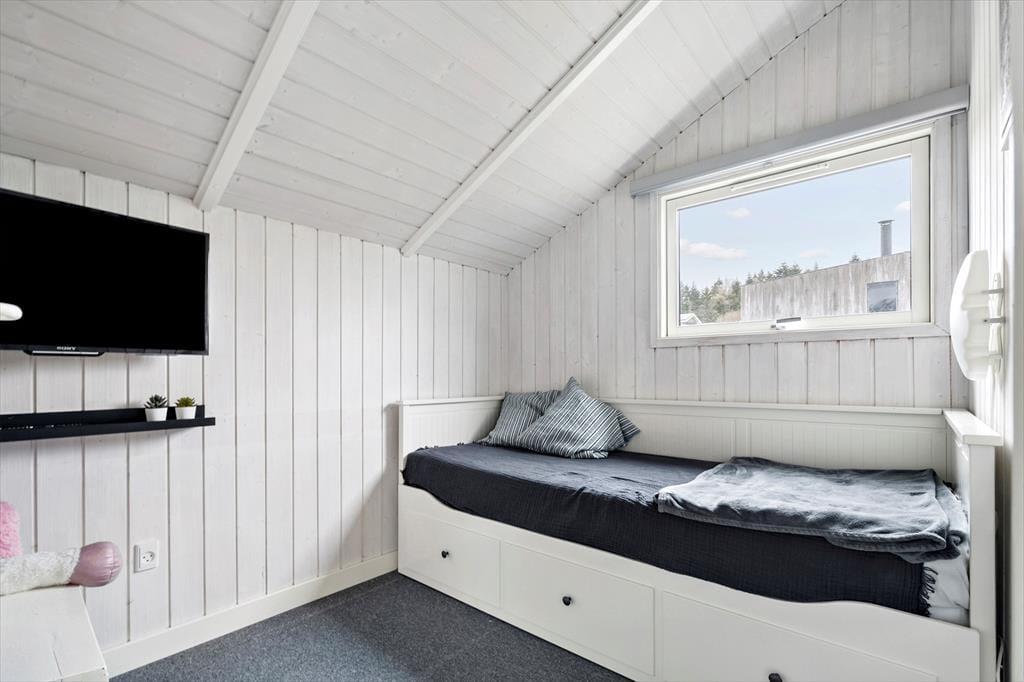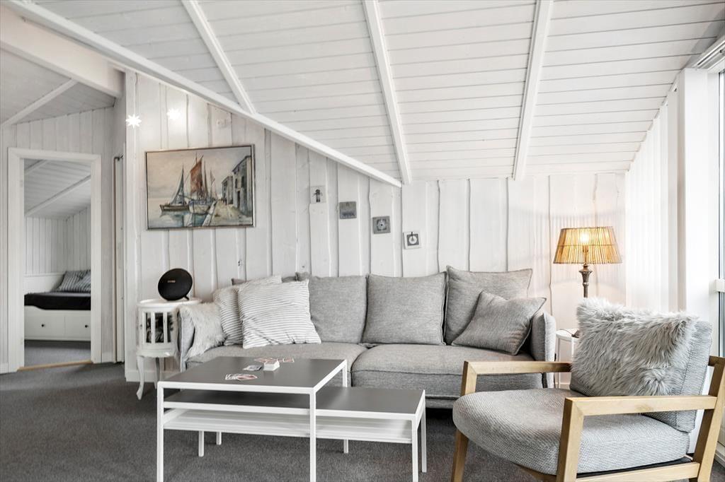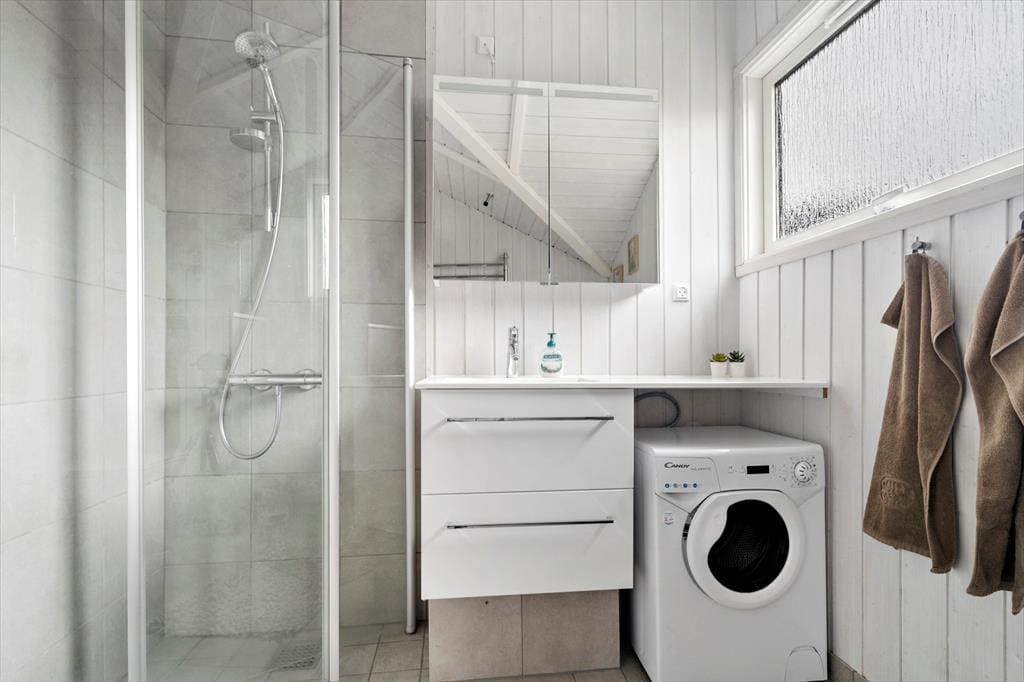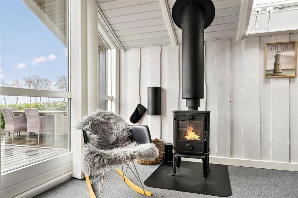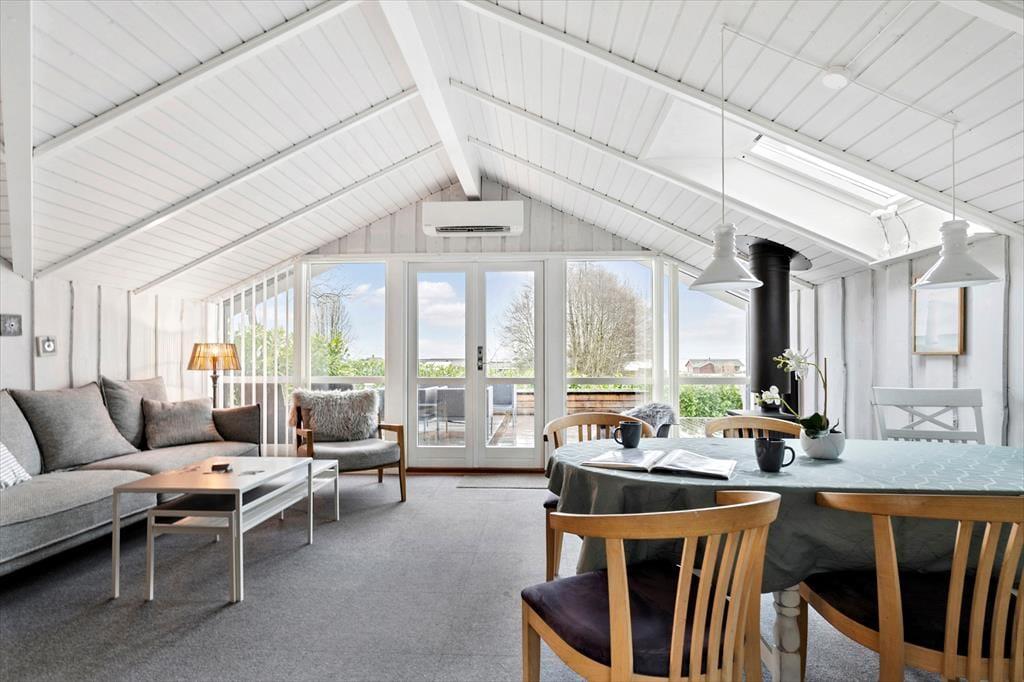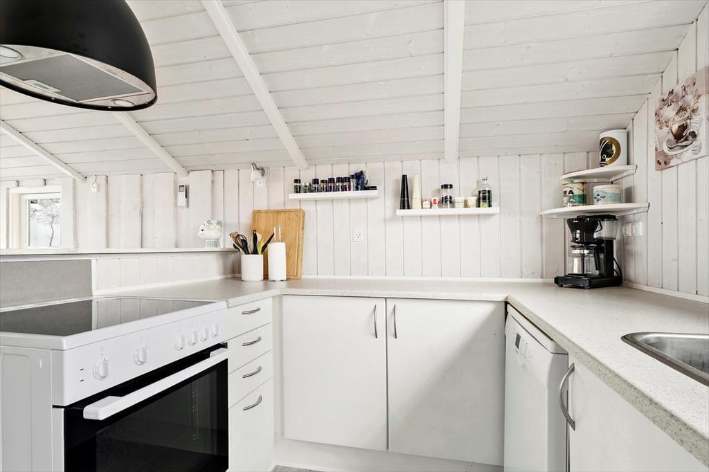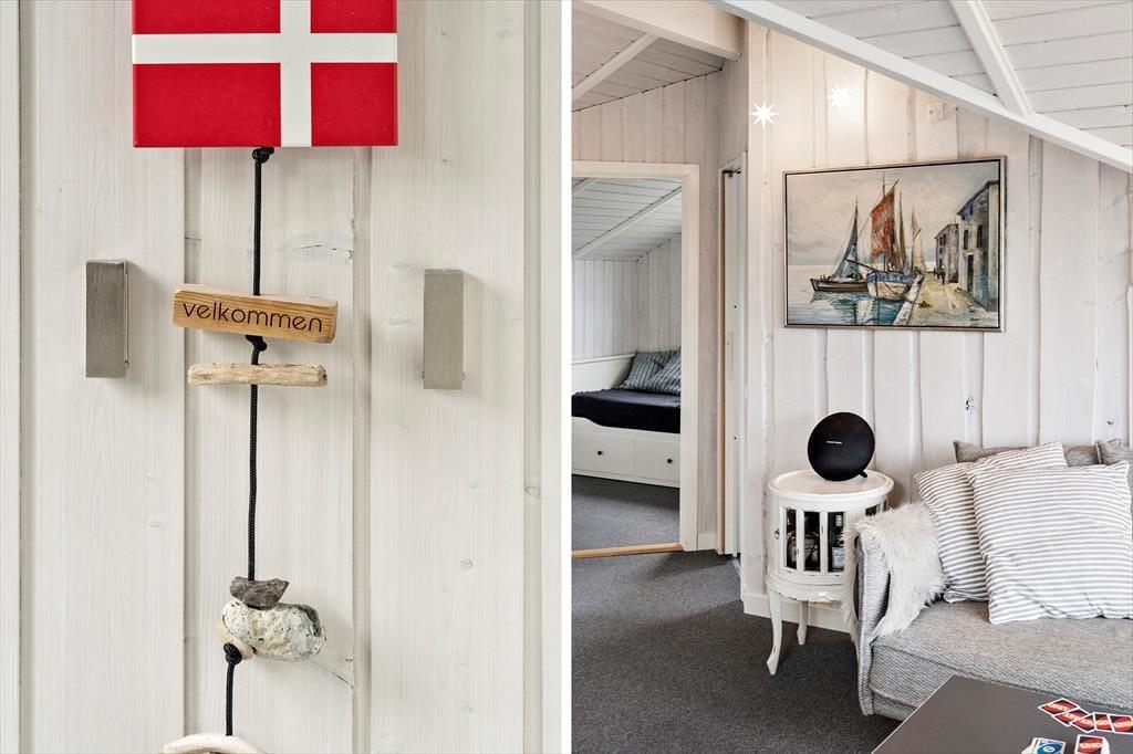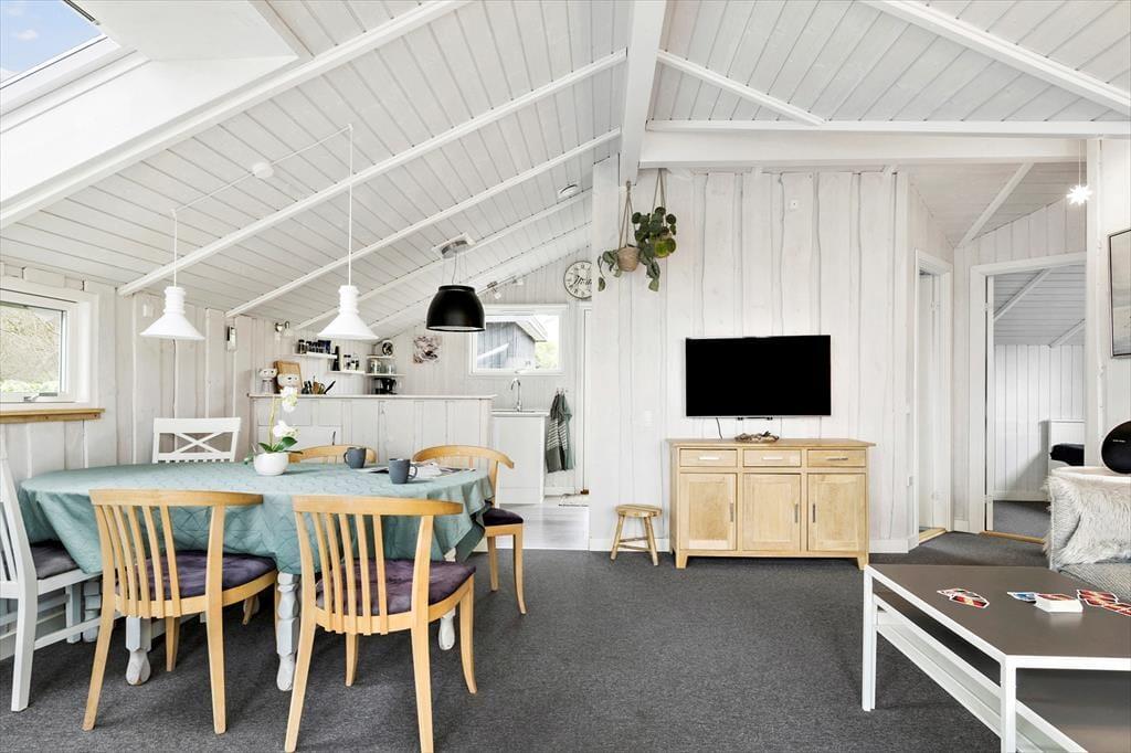 Sommerhuset byder på en lys og indbydende atmosfære, hvor stort vinduesparti giver et dejligt lysindfald og en smuk udsigt mod vandet. Det åbne køkkenalrum skaber en afslappet og rummelig ramme om ferien, og med køkkenet i direkte forbindelse med stuen er der lagt op til hyggelige stunder med familien – både under madlavningen og omkring spisebordet. Den enkle, nordiske indretning med moderne detaljer gør huset til et sted, hvor du straks føler dig hjemme.
