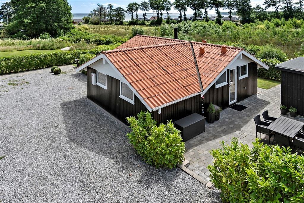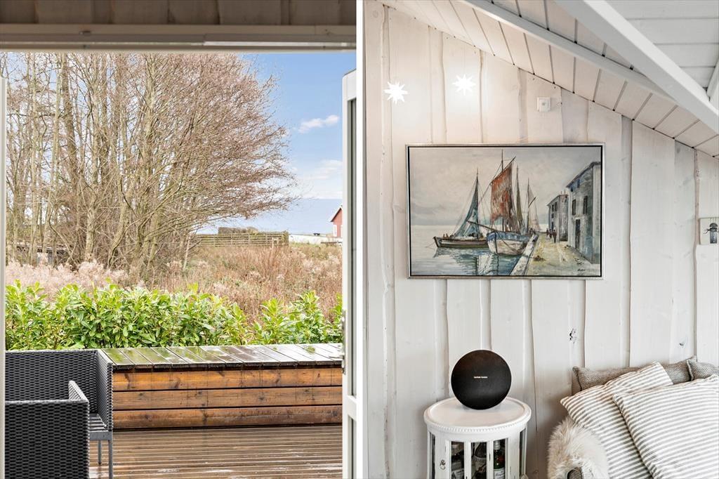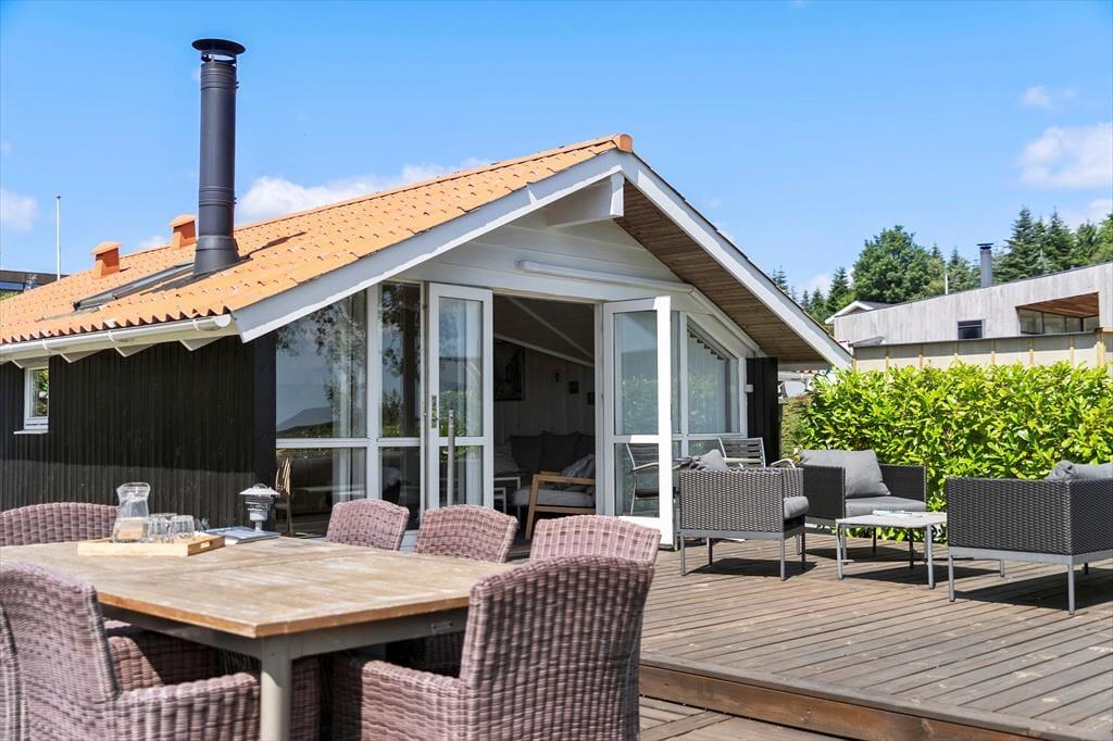 Udelivet leves på den store terrasse, der er anlagt i flere niveauer og tilbyder forskellige kroge til afslapning og samvær. Her kan du starte dagen med en kop kaffe, mens du nyder udsigten til havet i horisonten, og om aftenen kan terrassen danne rammen om hyggelige grillaftener under åben himmel. Med rolige omgivelser på en lille, lukket vej og en grøn baggrund er der plads til både leg og afslapning. Området omkring sommerhuset inviterer til lange gåture, hvor du kan nyde den friske luft og den smukke natur.
