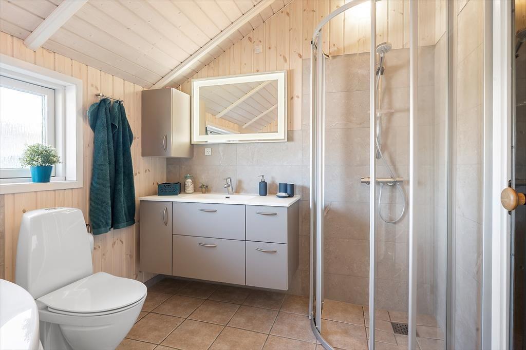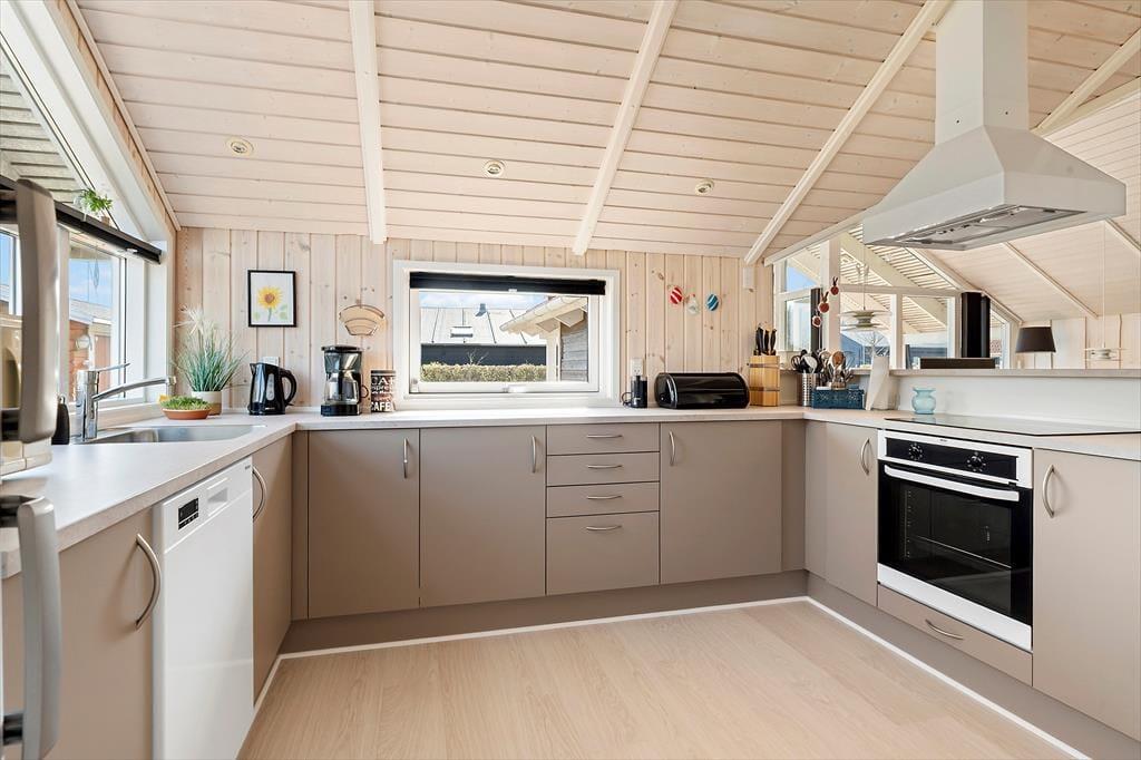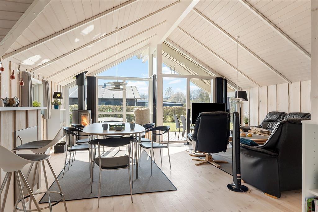Det første, der møder dig, når du træder indenfor, er en rar og indbydende atmosfære med masser af lys og luft. Det lyse interiør og loftet i kip skaber en fornemmelse af rummelighed og giver huset et let og imødekommende udtryk. Det åbne opholdsrum samler stue og køkken i ét og bliver hurtigt familiens naturlige samlingspunkt – hvad enten I laver mad sammen, spiller spil ved spisebordet eller slapper af i sofaen med udsigt til haven. Badeværelset er indrettet med en skøn spa og sauna, som fuldender oplevelsen af velvære og forkælelse – perfekte rammer efter en dag ved stranden eller en lang gåtur i det fri. Huset indbyder med andre ord til ro, nærvær og kvalitetstid med dem, du holder af.